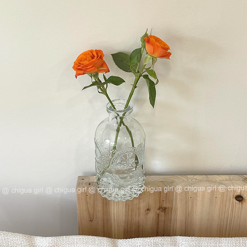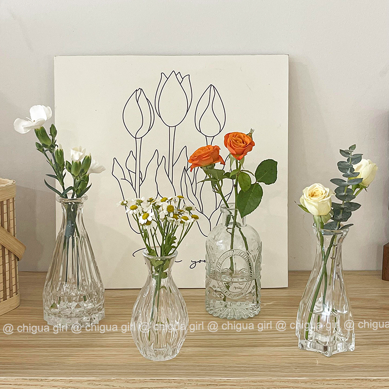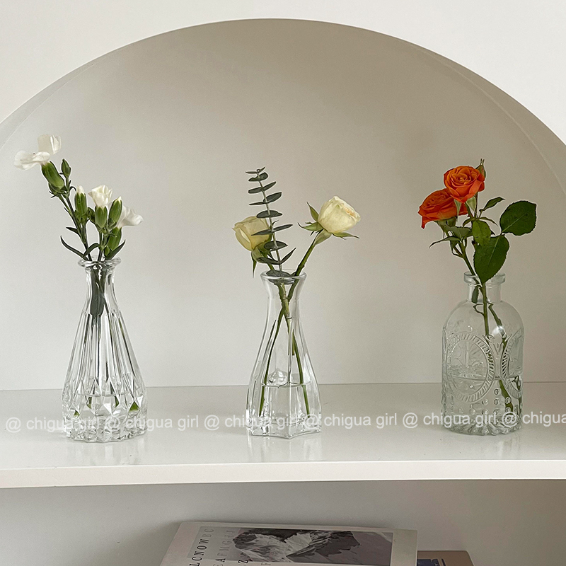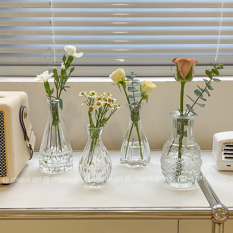 인 스타일 빈티지 투명 유리 작은 꽃병 차 장착 거실 꽃-프랑스 스타일 미니 기숙사 꽃 수경 호닝 비문