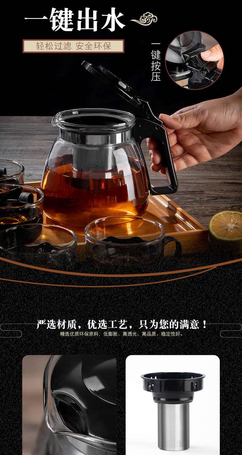 가정용 대용량 유리 주전자 세트 티 컵 스트레인 높은 온도 저항하는 주전자 차 냄비 차 세트 Heng Ming