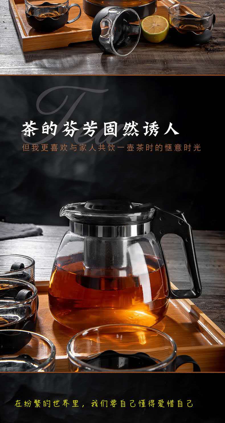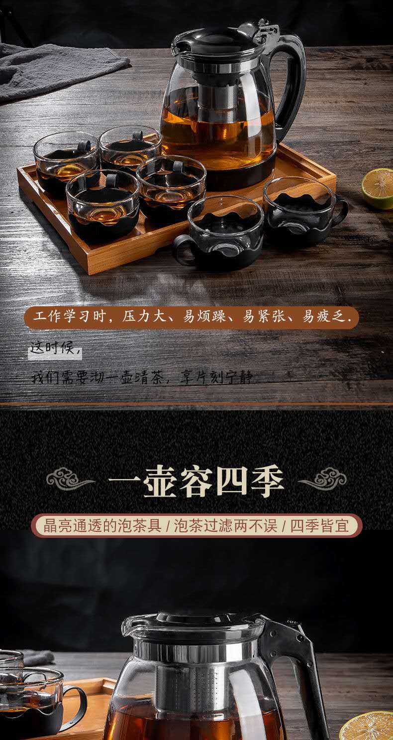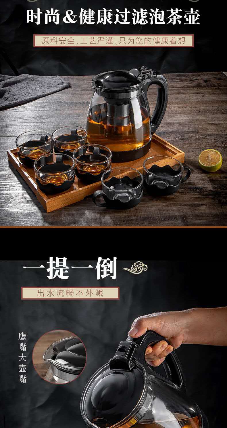 가정용 대용량 유리 주전자 세트 티 컵 스트레인 높은 온도 저항하는 주전자 차 냄비 차 세트 Heng Ming스토어 가기