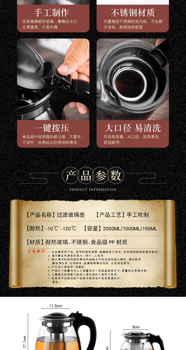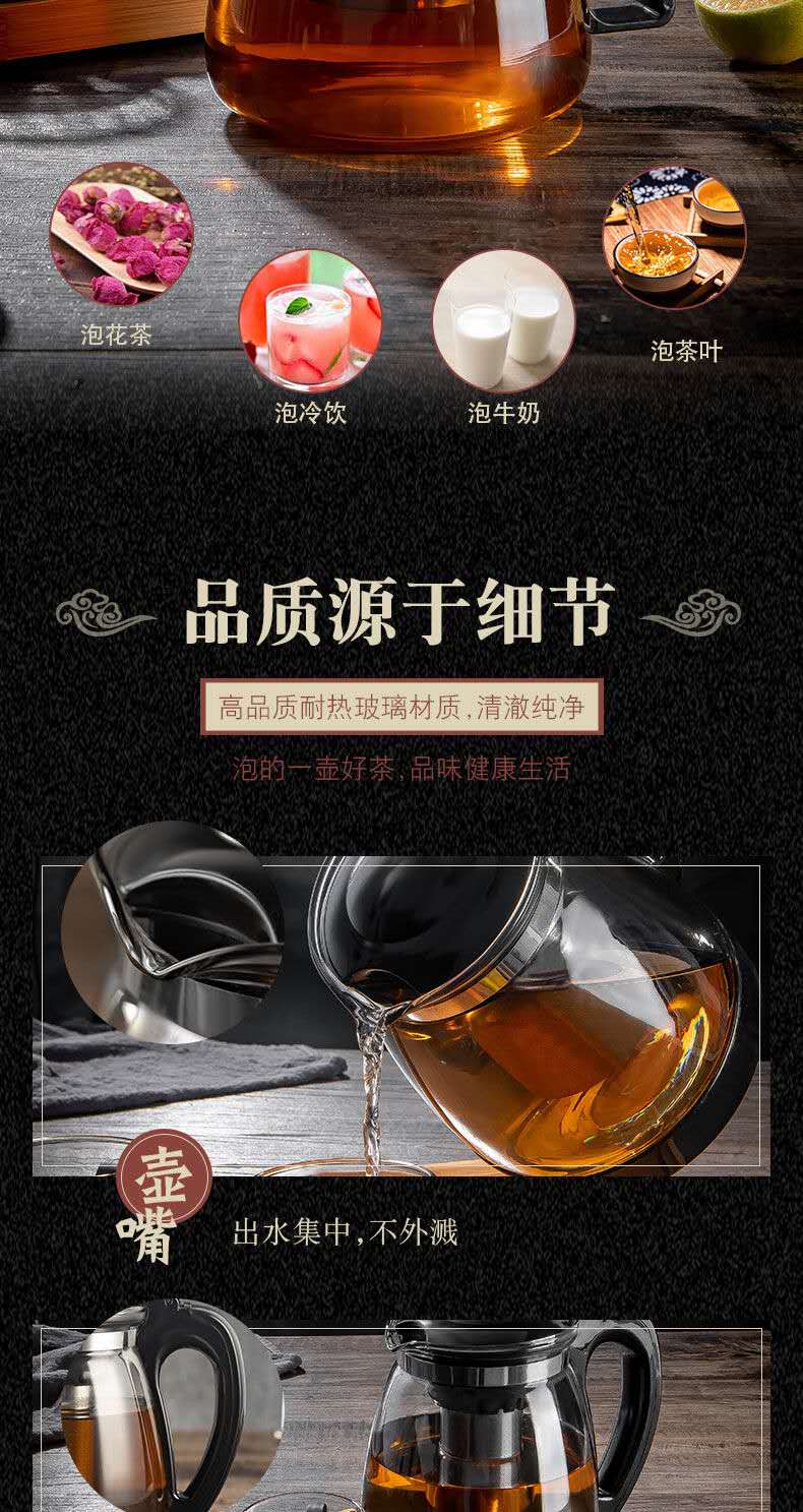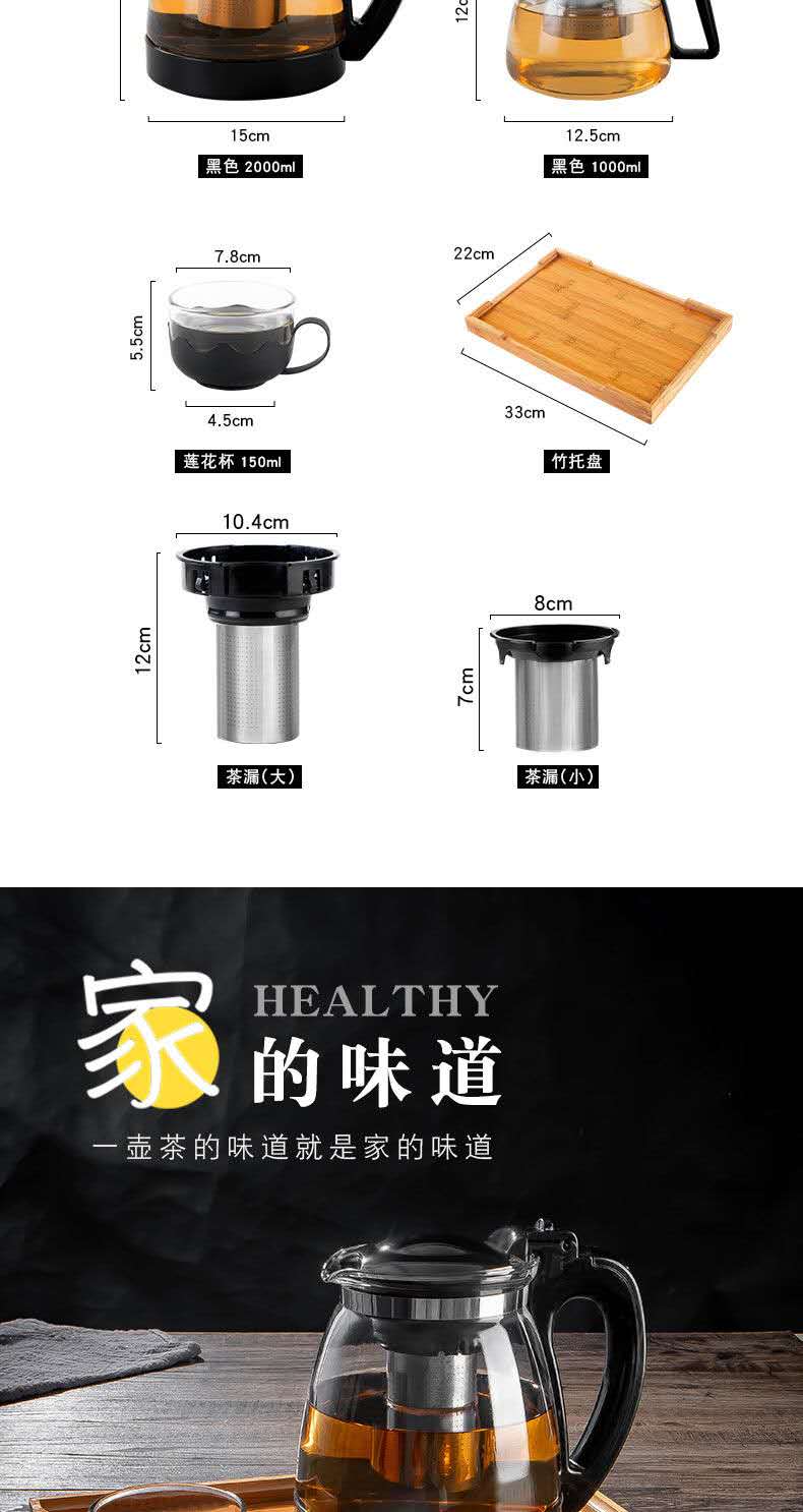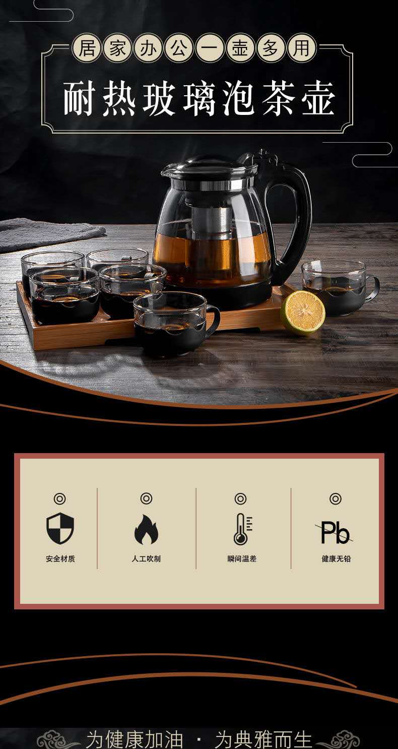 가정용 대용량 유리 주전자 세트 티 컵 스트레인 높은 온도 저항하는 주전자 차 냄비 차 세트 Heng Ming스토어 가기