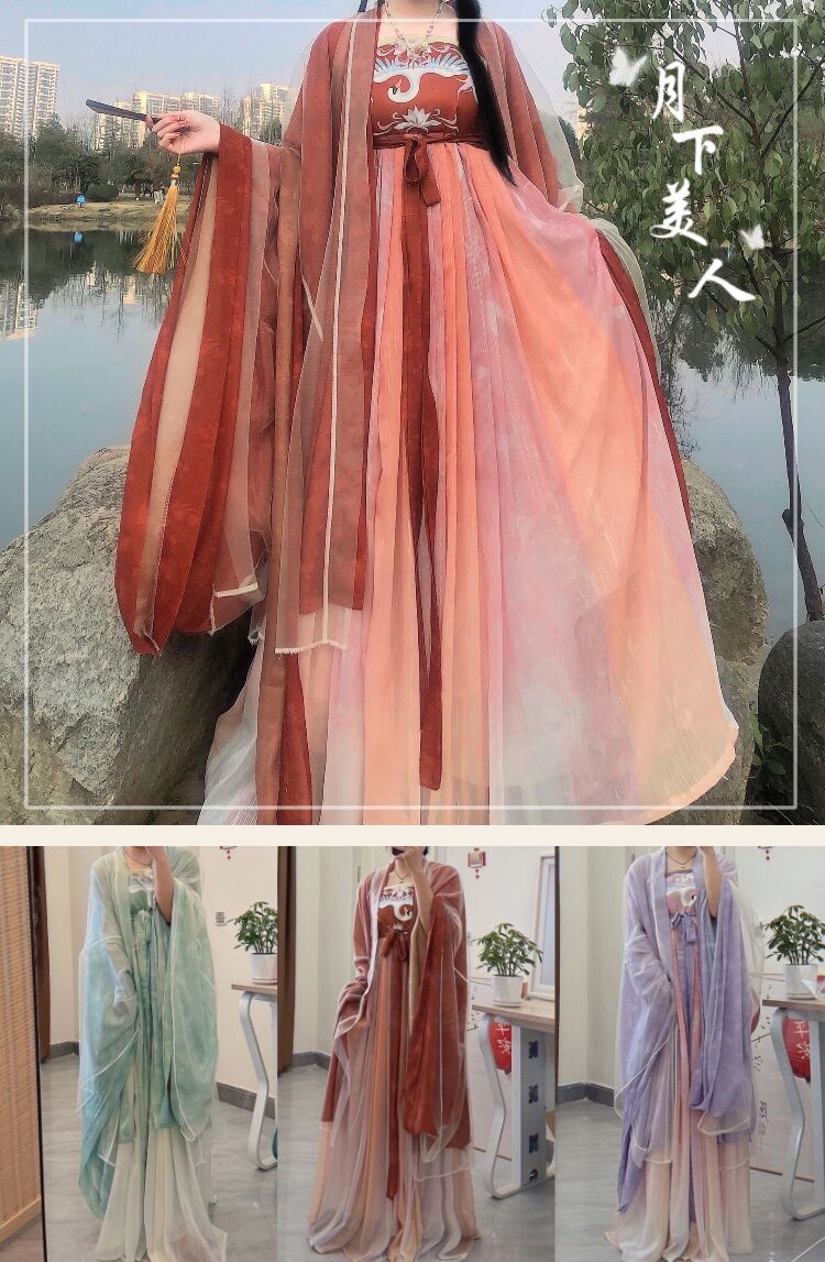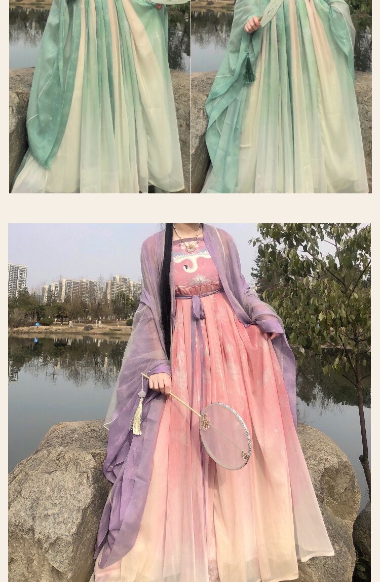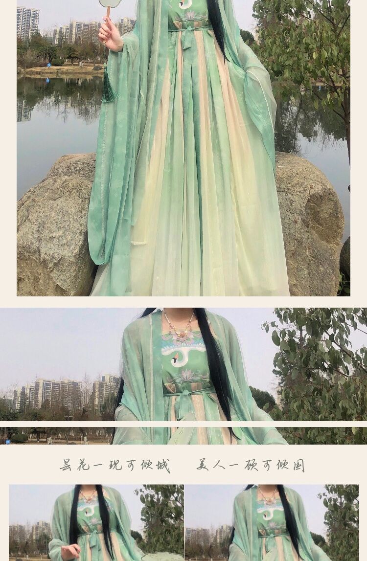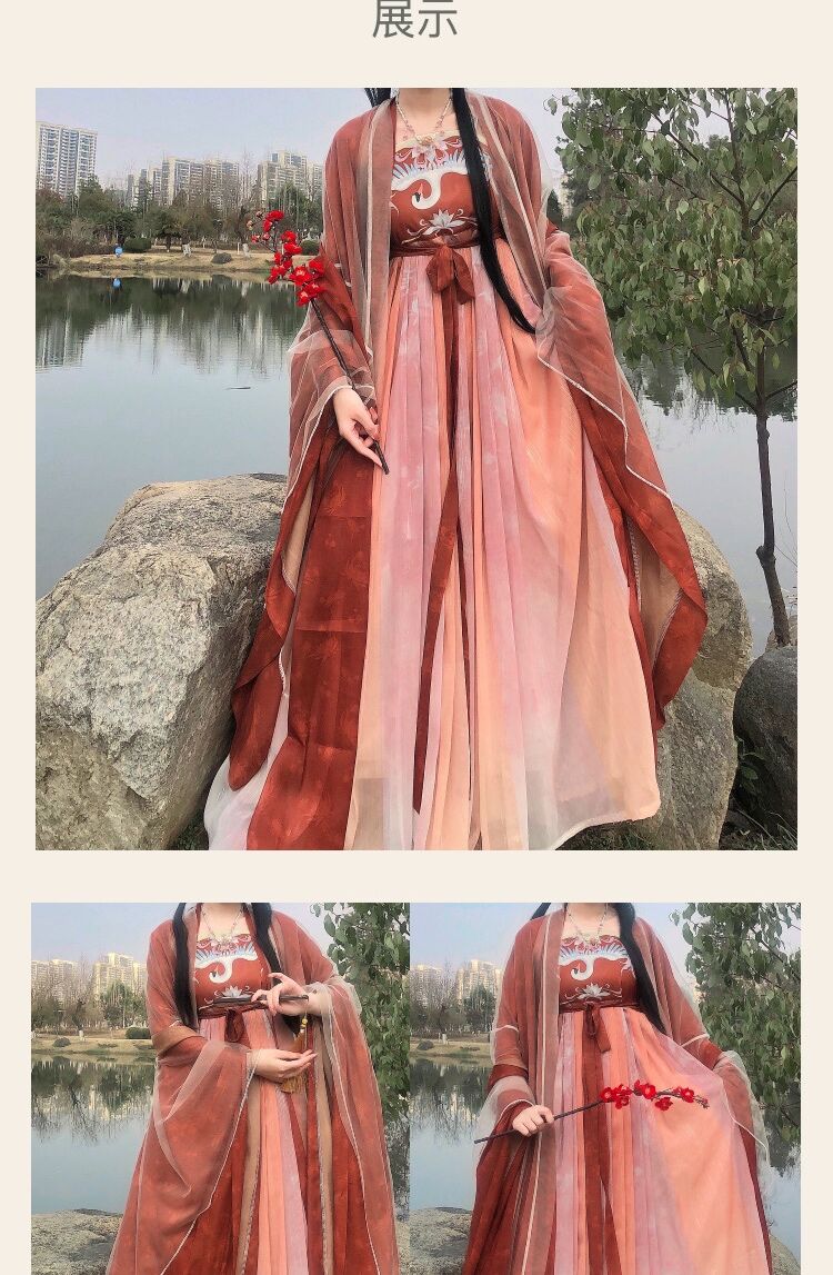 배 꽃 파빌리온 원래 한푸 여성의 달 아름다움 Chebula 스커트 탕 만든 큰 소매 셔츠 인쇄 요정 봄과 여름 매달려 비문