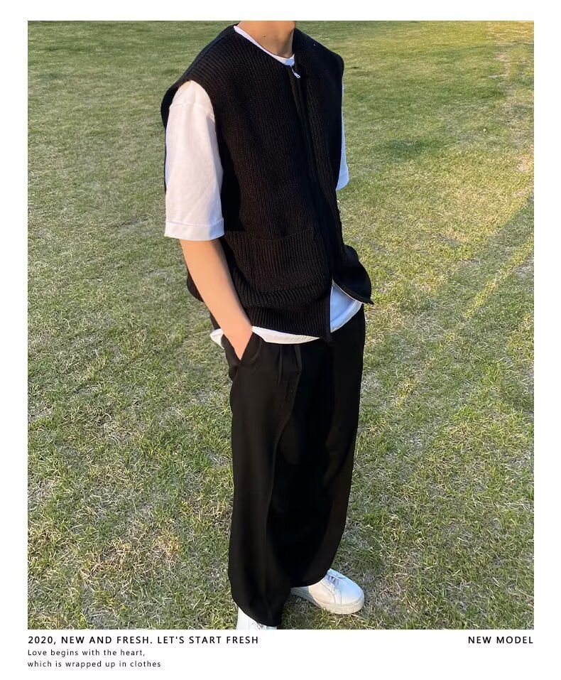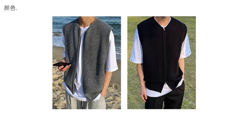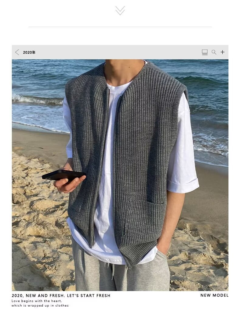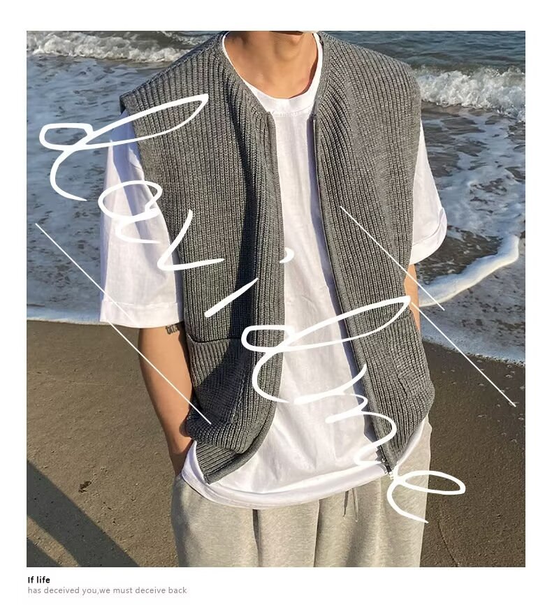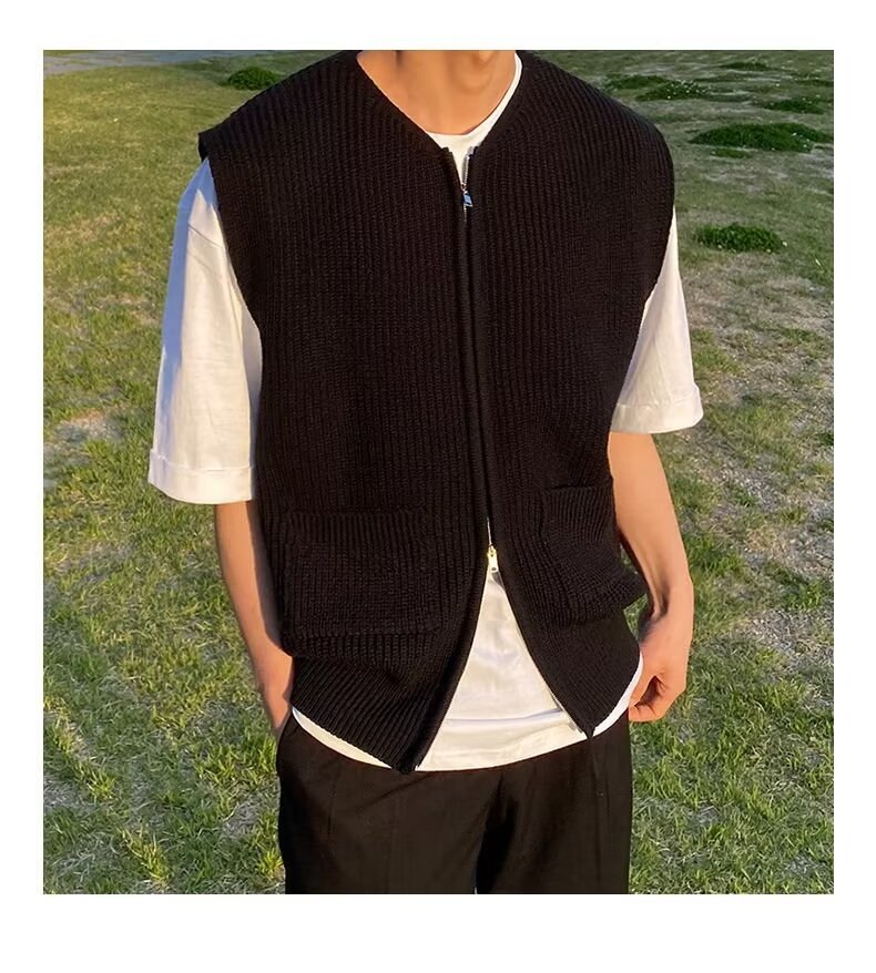 초가을 크루 넥 조끼 스웨터 남성용 니트웨어 조끼 유행 지퍼 카디건 홍콩 스타일 인스타그램 인기 브랜드 루즈 재킷스토어 가기