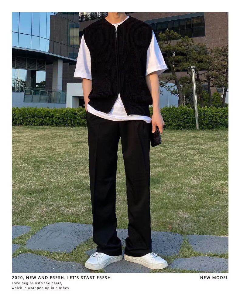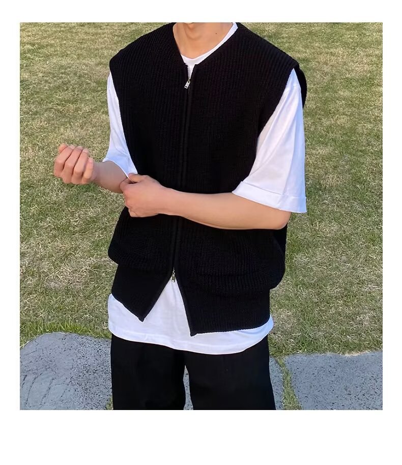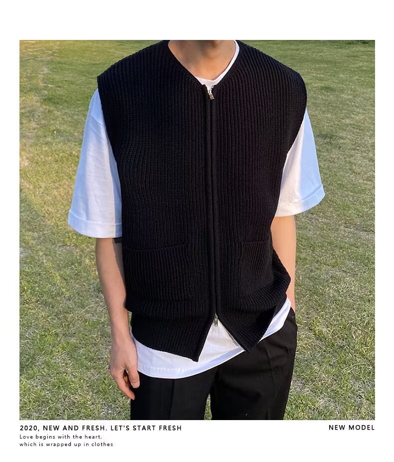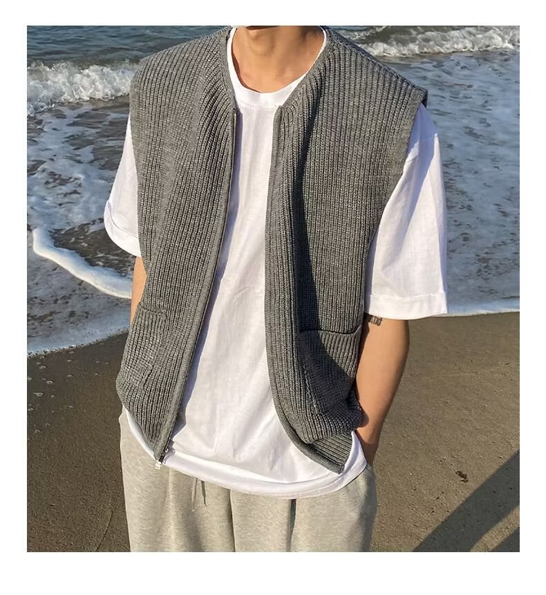 초가을 크루 넥 조끼 스웨터 남성용 니트웨어 조끼 유행 지퍼 카디건 홍콩 스타일 인스타그램 인기 브랜드 루즈 재킷스토어 가기