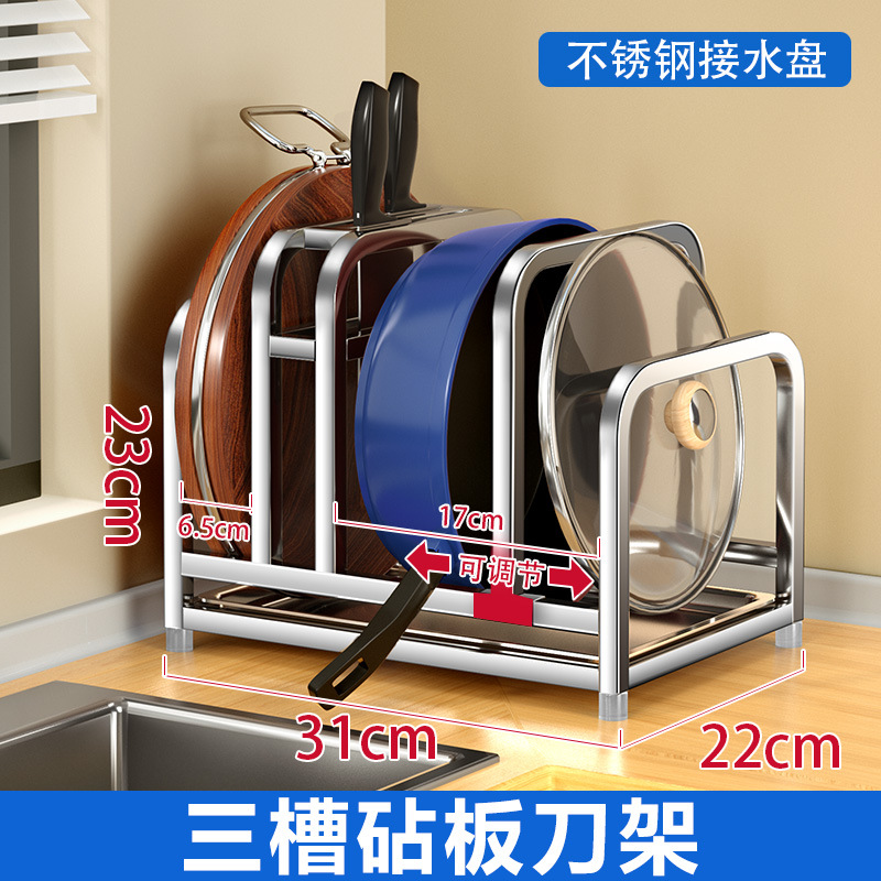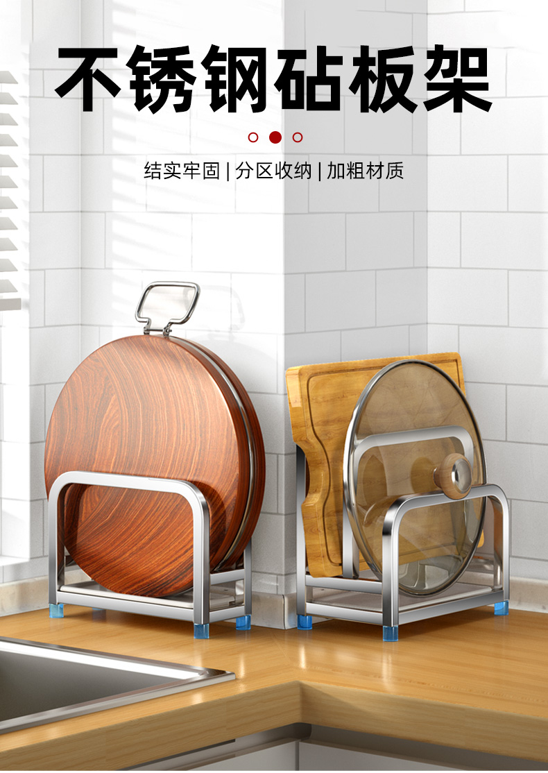 304 스테인레스 스틸 주방 냄비 커버 보관 랙 다기능 도마 보드 나이프는 Heng Ming의 배치를위한 펀치가없는 테이블을 보유하고 있습니다.스토어 가기