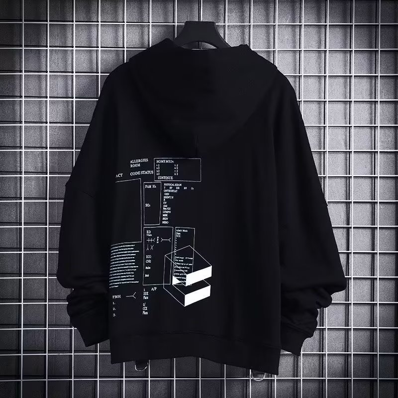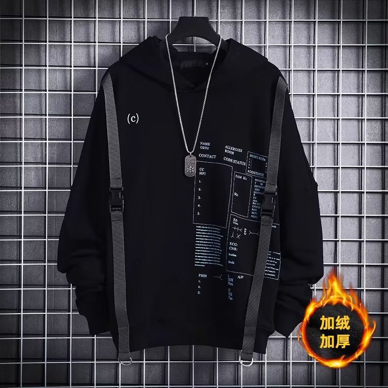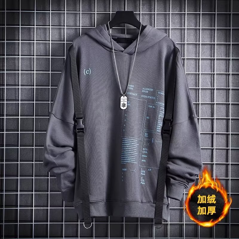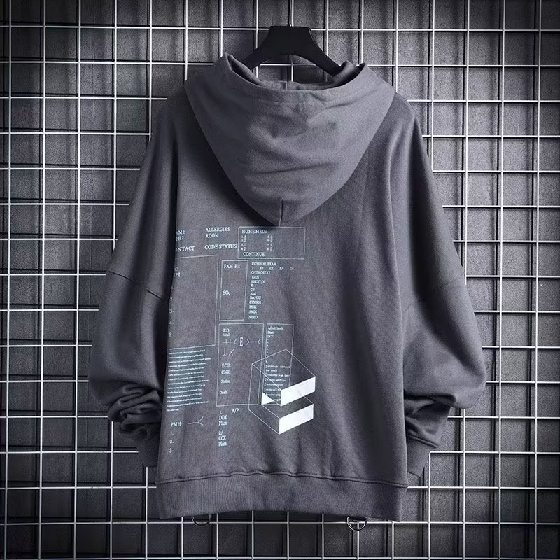 봄과 가을 2024 새로운 미국 캐주얼 오버 사이즈 하이 스트리트 올 매치 패션 후드 풀오버 스웨트 셔츠 남성 패션스토어 가기