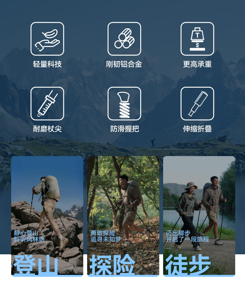 나는 비행 등산 스틱 야외 하이킹 스틱 알루미늄 합금 텔레스코픽 워킹 스틱 전문 등산 장비 미끄럼 목발 등반 기둥스토어 가기