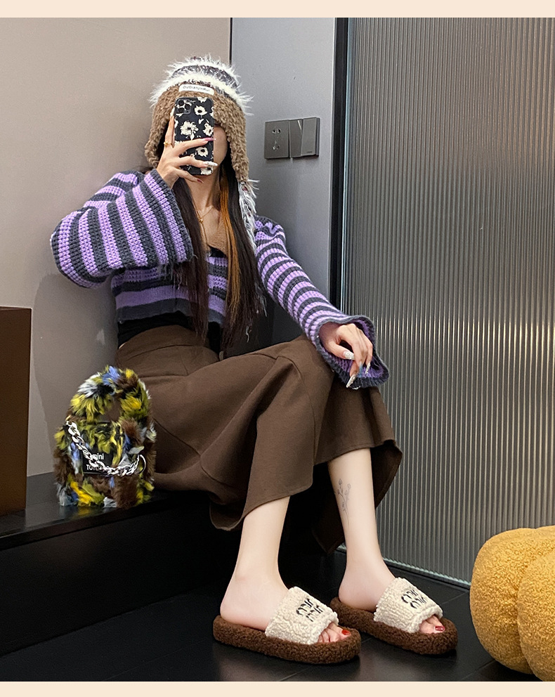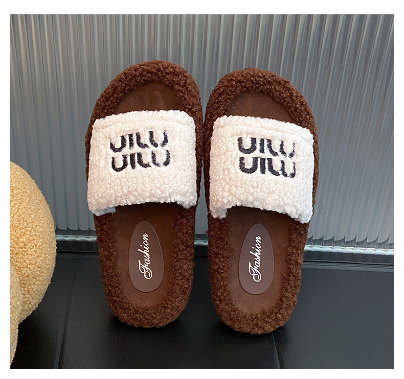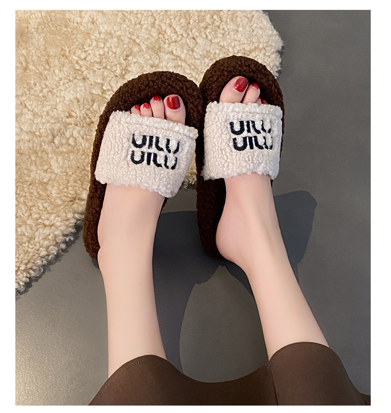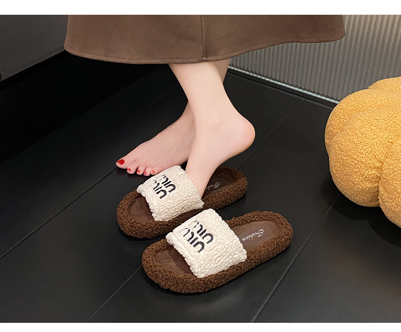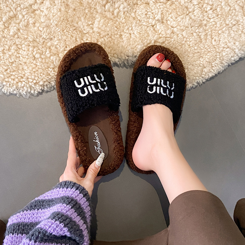 새로운 가을, 겨울 양털 플러시 따뜻한 인터넷 연예인 패션 홈 면화 슬리퍼 여성 실내용 두꺼운 밑창 모피 슬리퍼