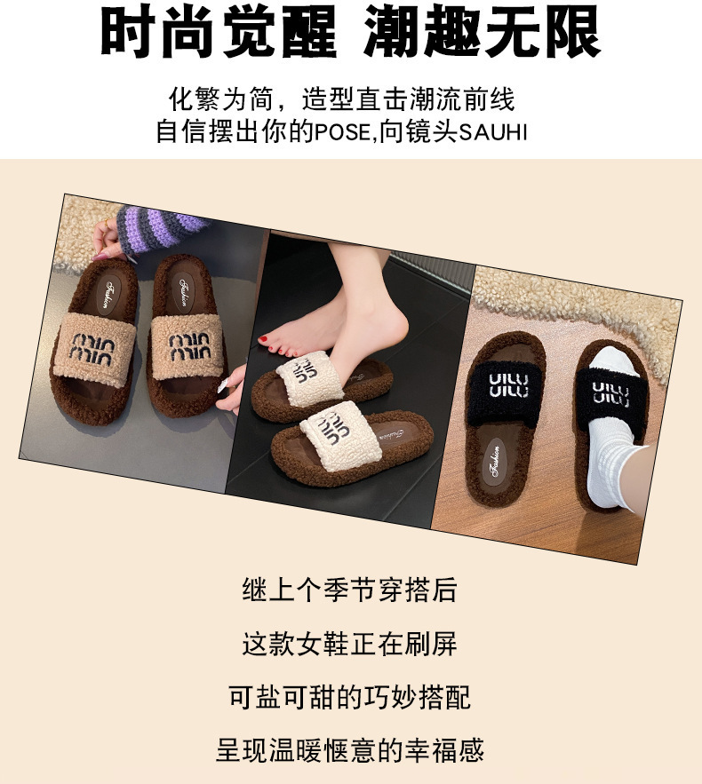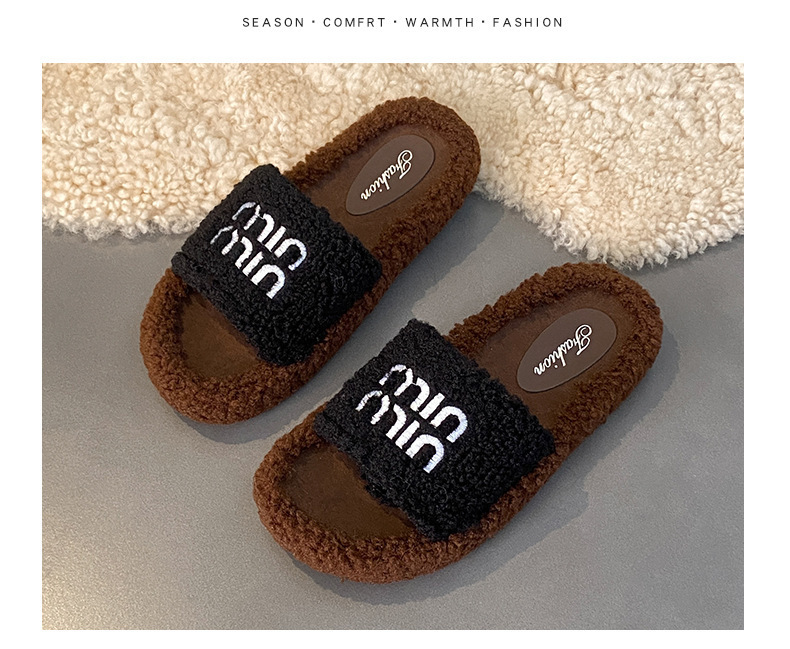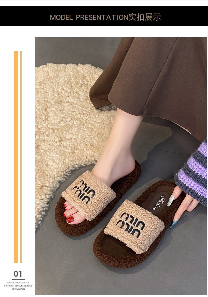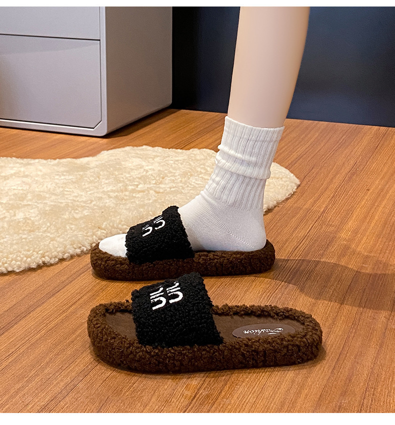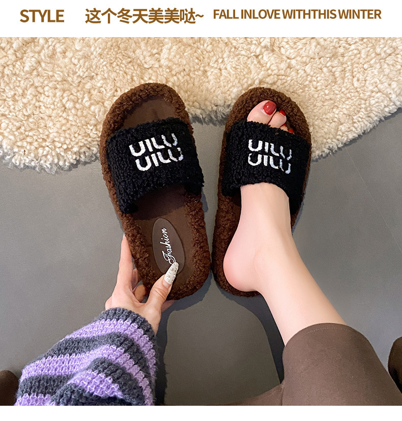 새로운 가을, 겨울 양털 플러시 따뜻한 인터넷 연예인 패션 홈 면화 슬리퍼 여성 실내용 두꺼운 밑창 모피 슬리퍼스토어 가기