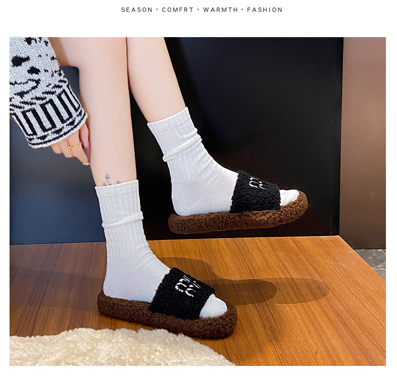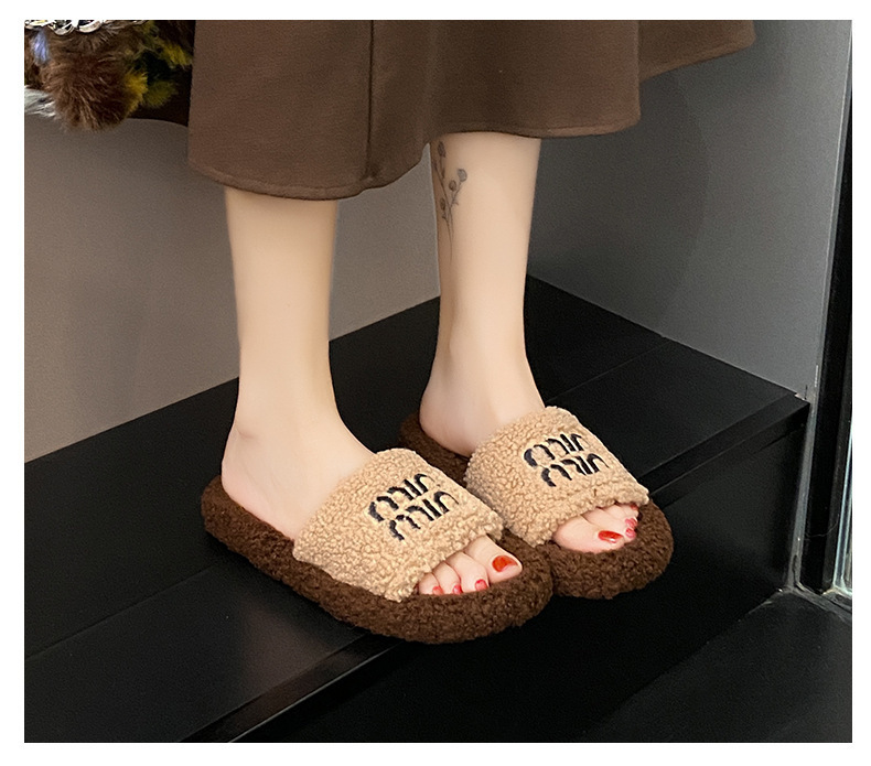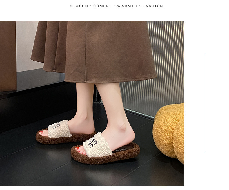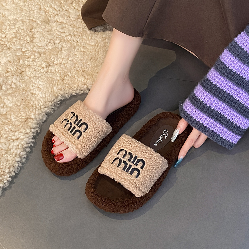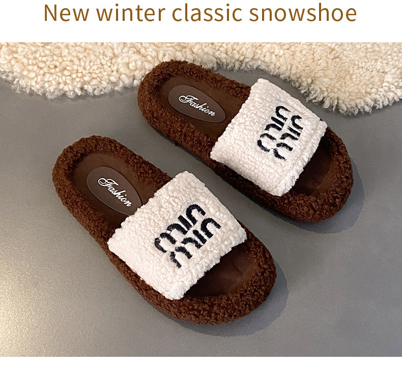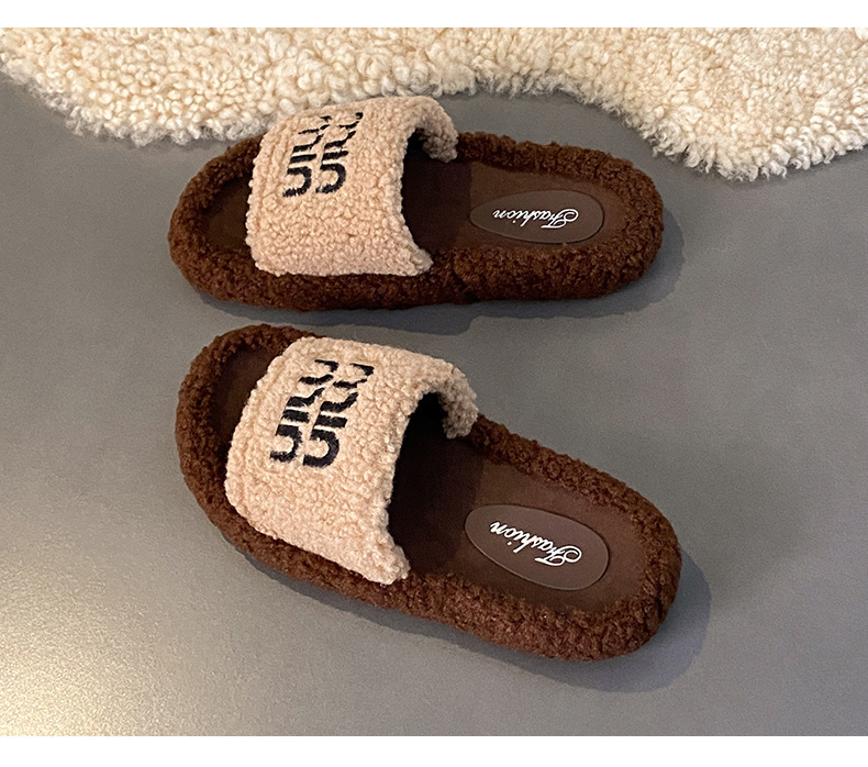 새로운 가을, 겨울 양털 플러시 따뜻한 인터넷 연예인 패션 홈 면화 슬리퍼 여성 실내용 두꺼운 밑창 모피 슬리퍼스토어 가기