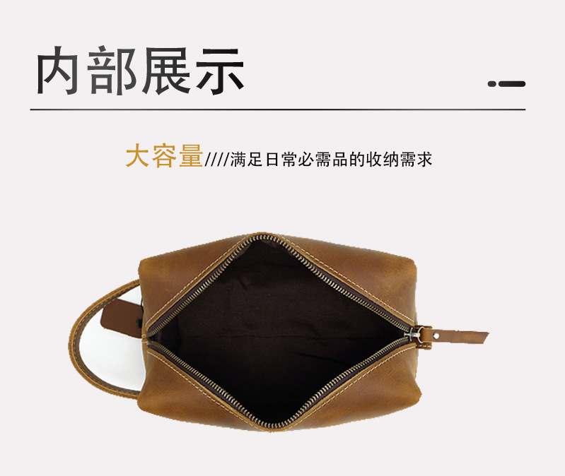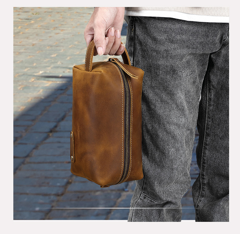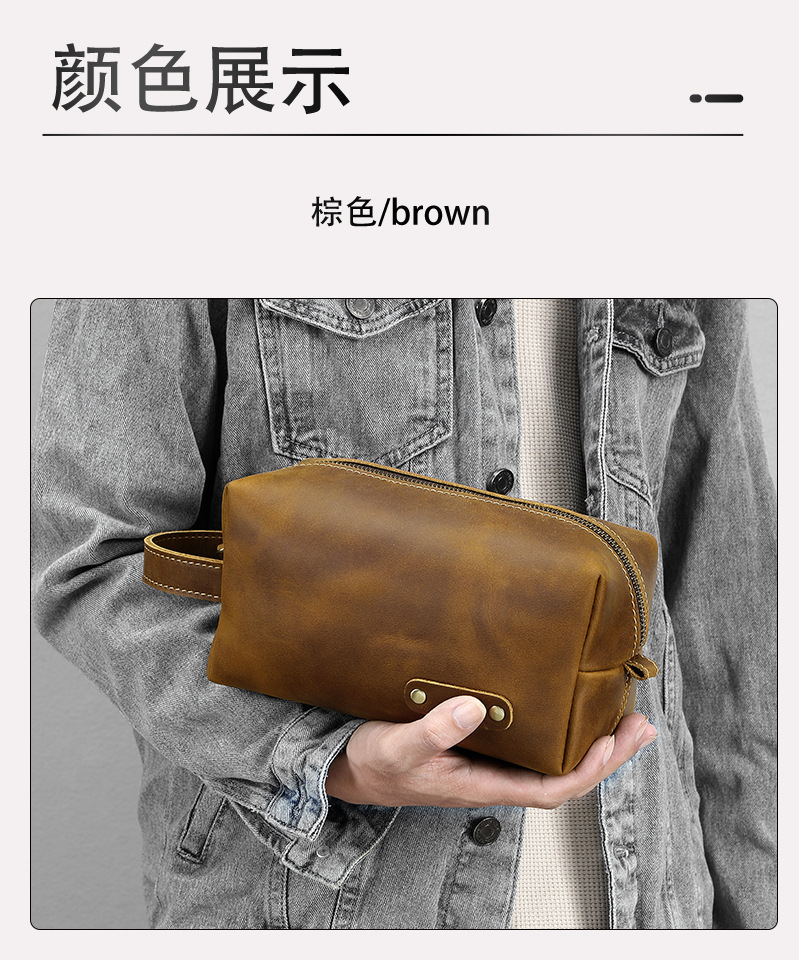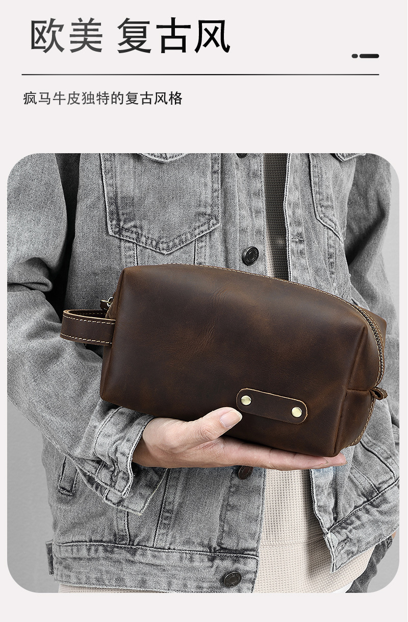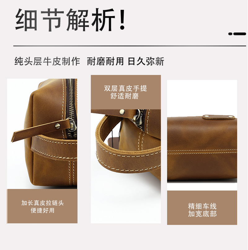 정품 가죽 세면도구 가방, 1층 소가죽 가죽 수납 가방, 복고풍 남성용 클러치 백, 내마모성 소가죽 가방, 국경 간 공급스토어 가기