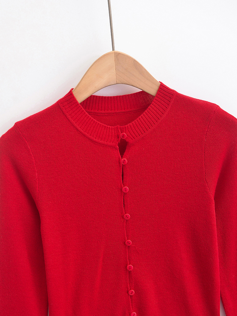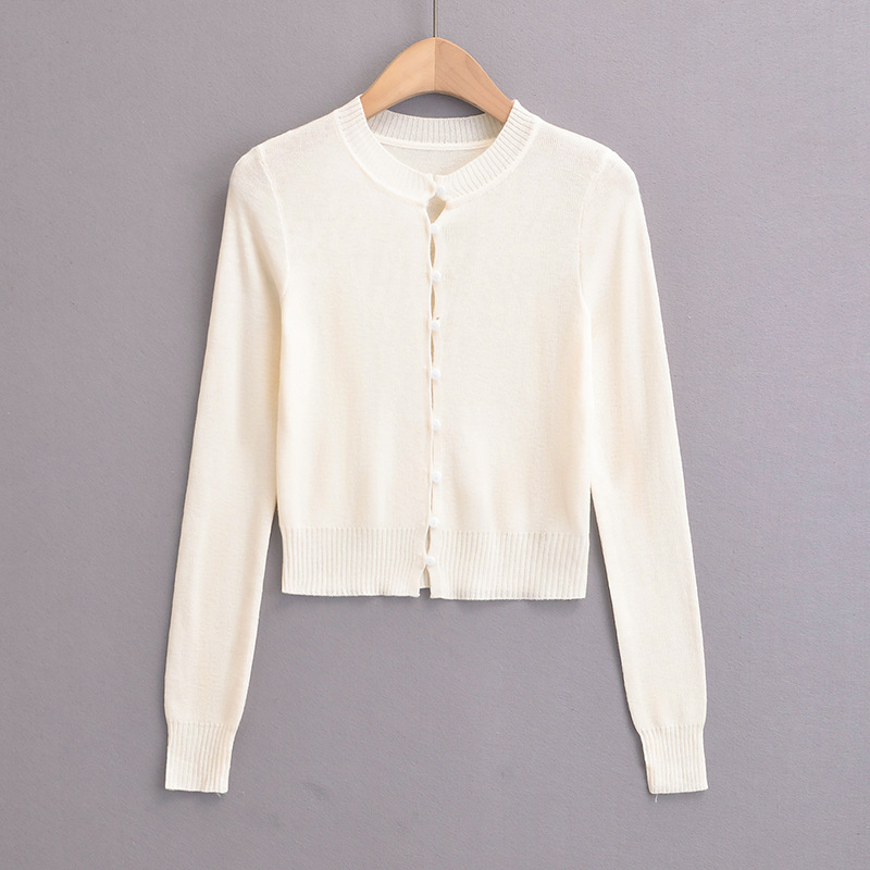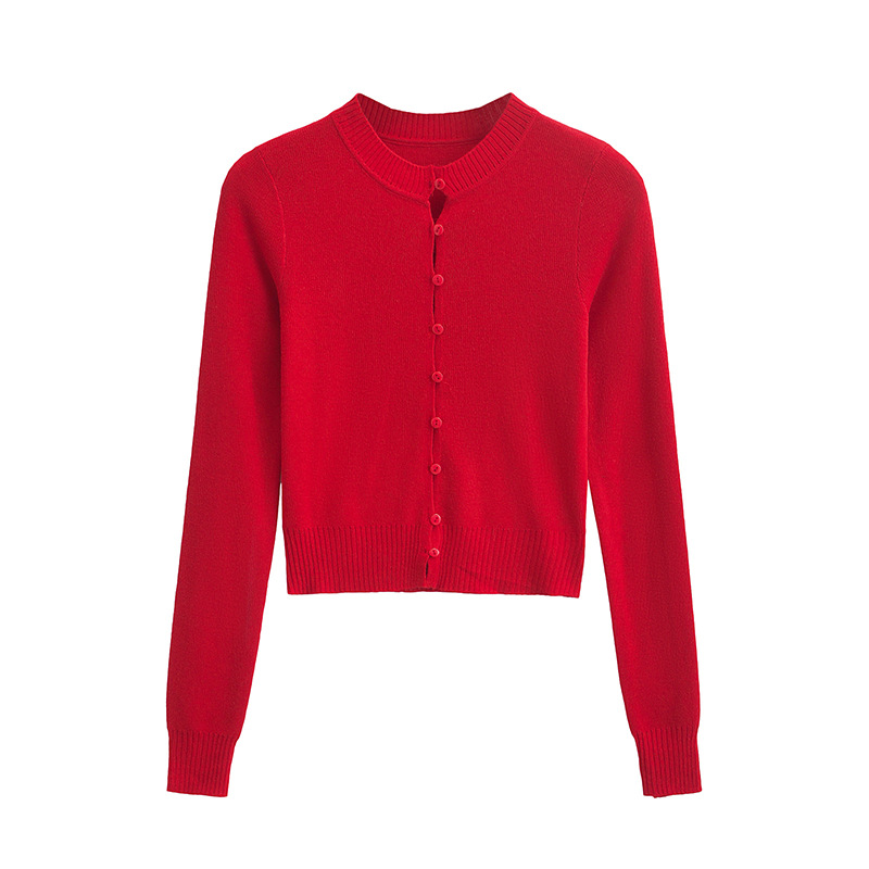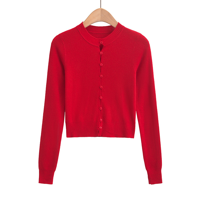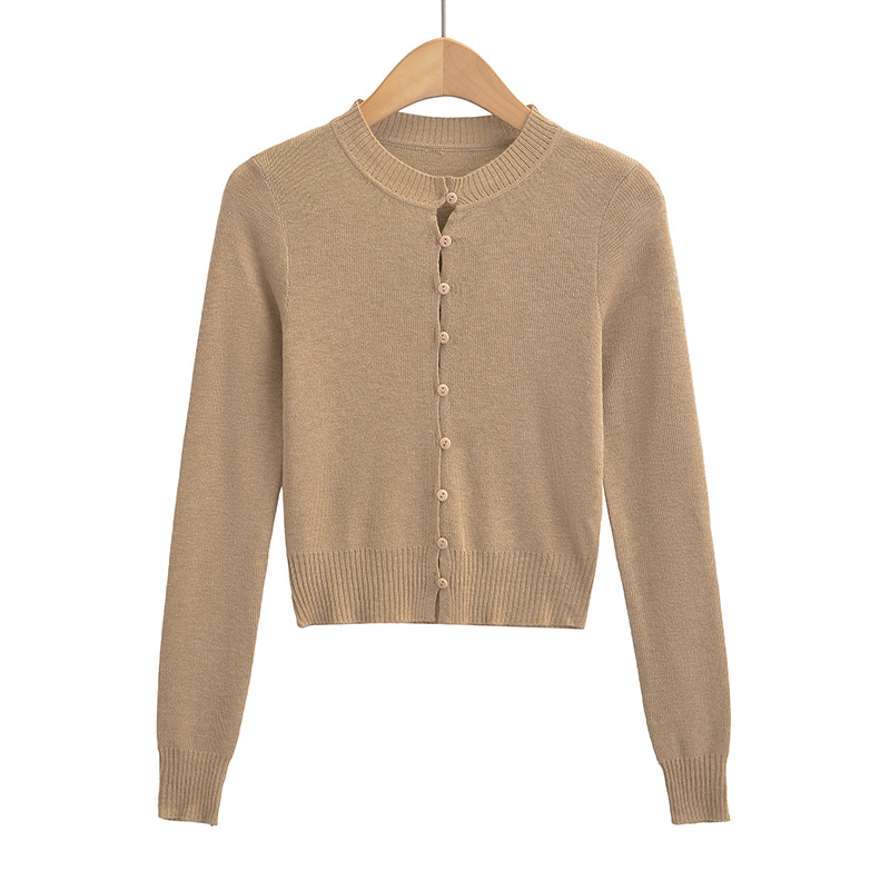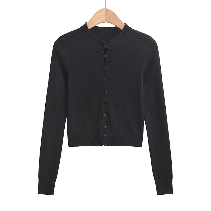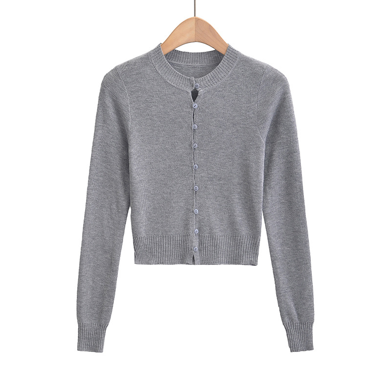 심플 아우터웨어 라운드 넥 싱글 브레스트 니트 카디건 여성 가을 2024 짧은 슬림 핏 솔리드 컬러 긴팔 스웨터 트렌디 코트스토어 가기
