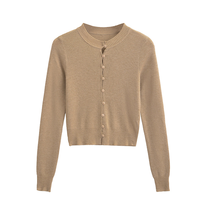 심플 아우터웨어 라운드 넥 싱글 브레스트 니트 카디건 여성 가을 2024 짧은 슬림 핏 솔리드 컬러 긴팔 스웨터 트렌디 코트