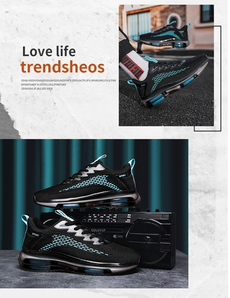 새로운 캐주얼 신발 남성 메쉬 통기성 플라이 짠 남성 신발 대외 무역 스포츠 플라이 짠 블레이드 에어 쿠션 야외 달리기 남성 신발