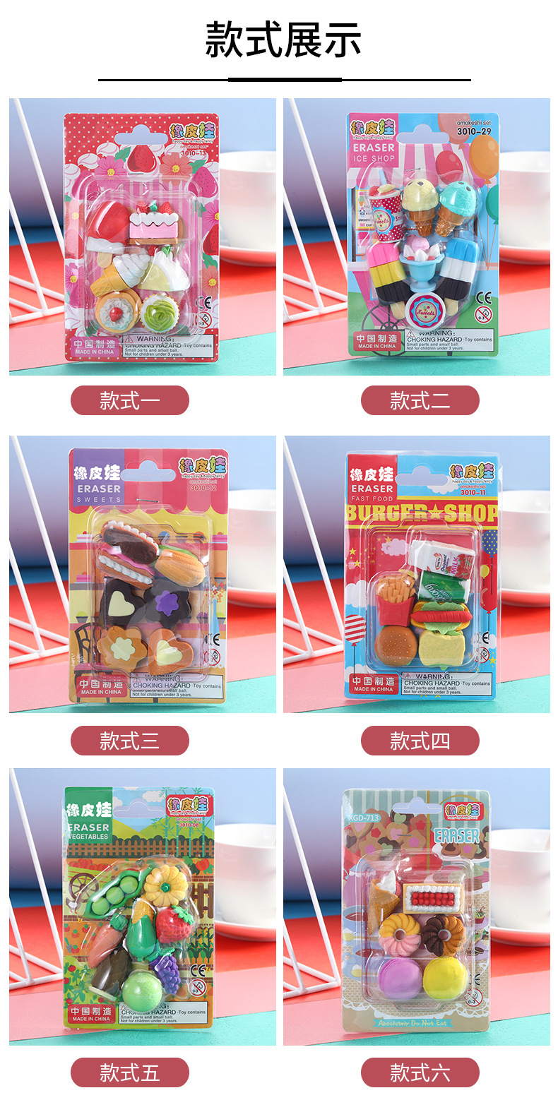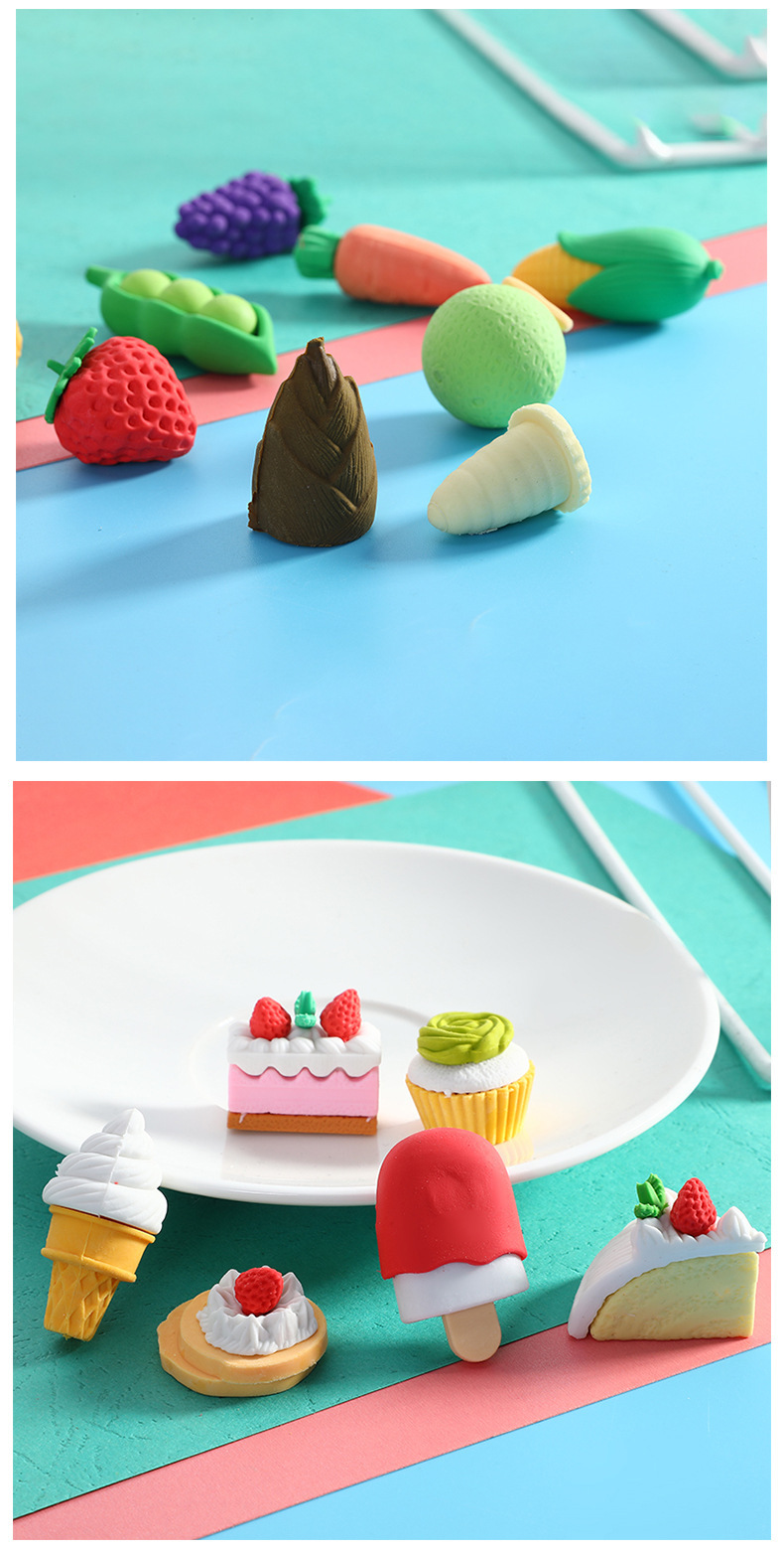 공장 직접 공급 창조적 인 tpr 시뮬레이션 아이스크림 도넛 야채 어린이 지우개 문구 재고스토어 가기