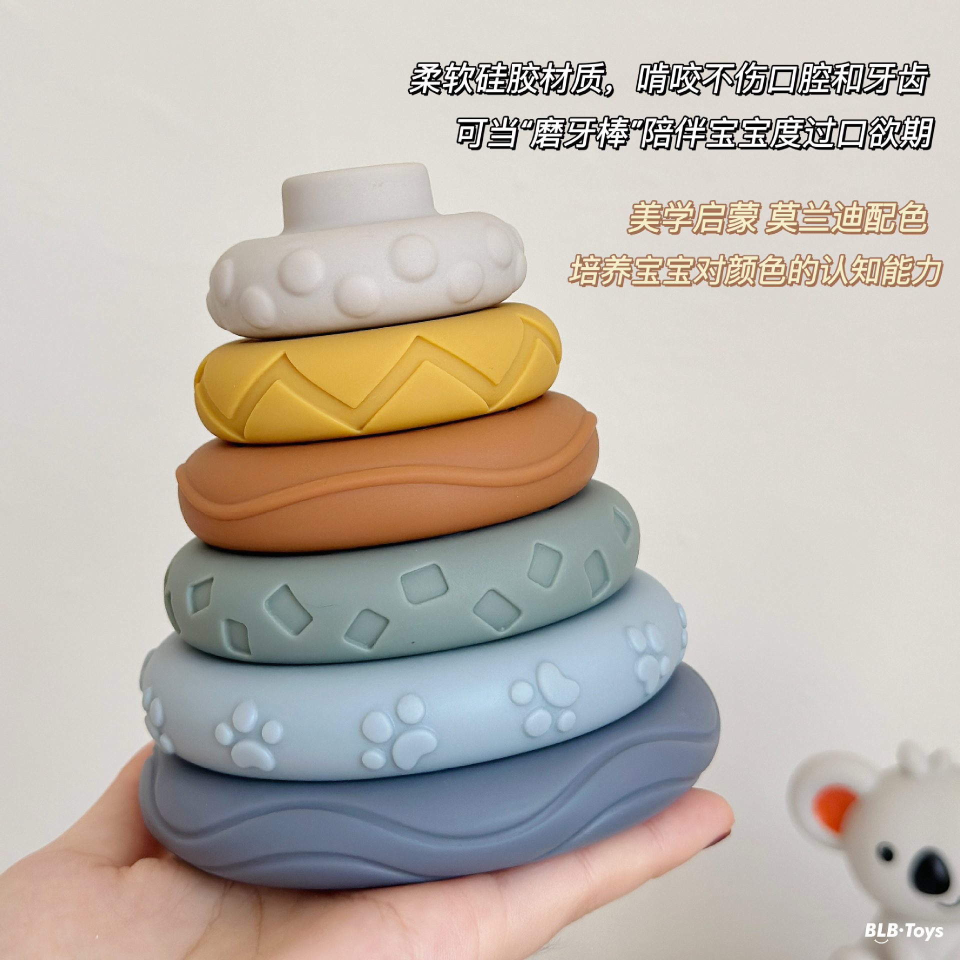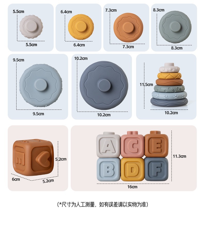 국경 간 신제품 아기 핸드 헬드 볼 장난감 부드러운 고무 스퀘어 빌딩 블록 스태킹 링 베이비 핀치 스태킹 핸드 헬드 볼