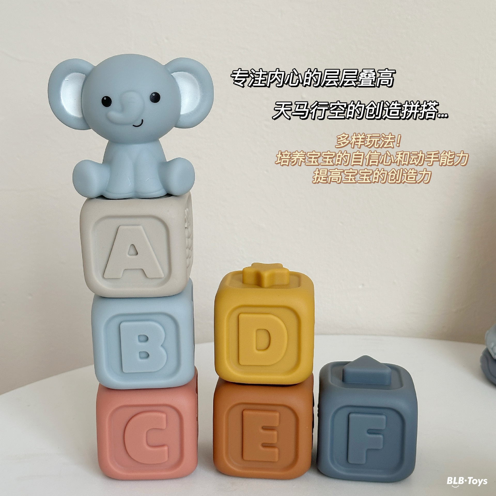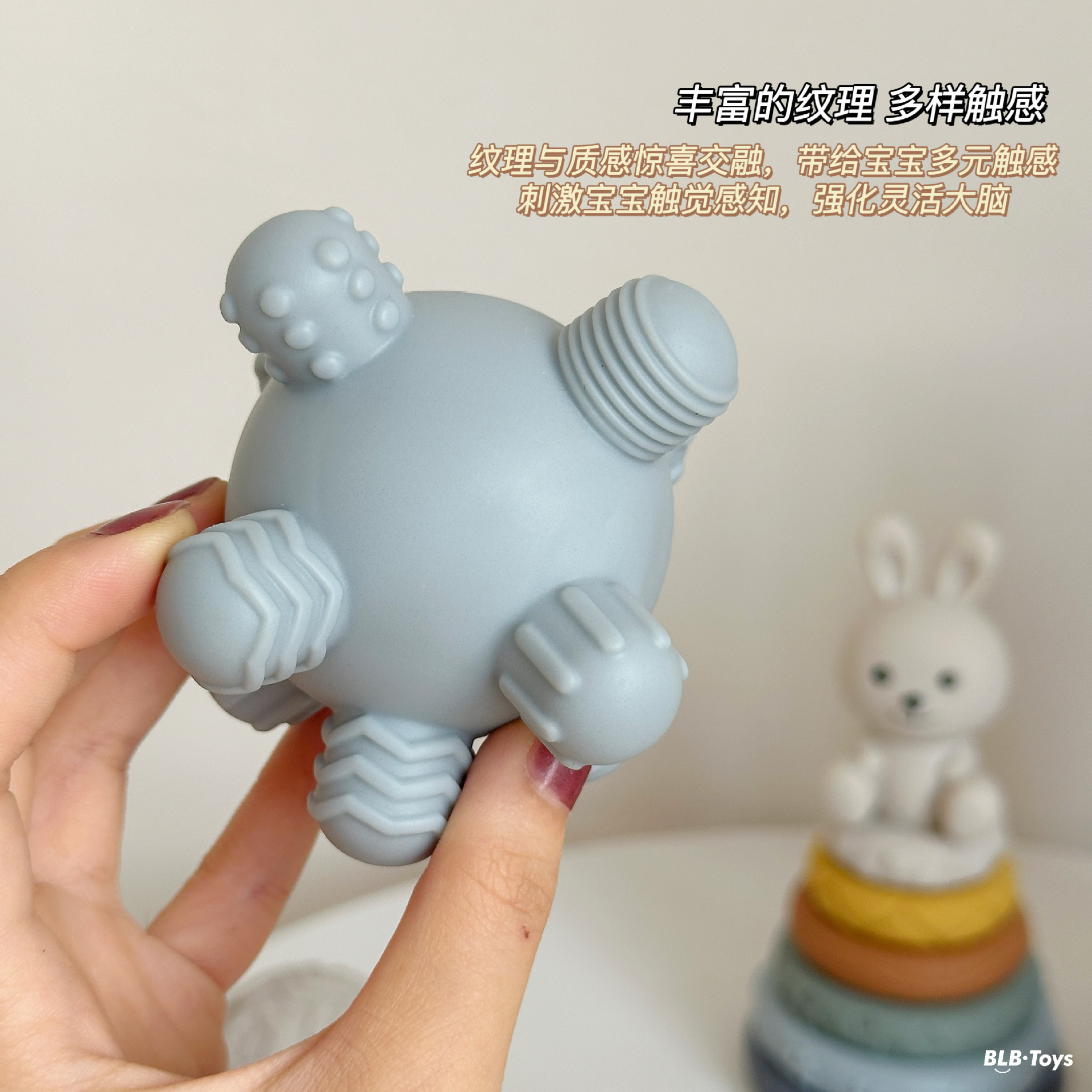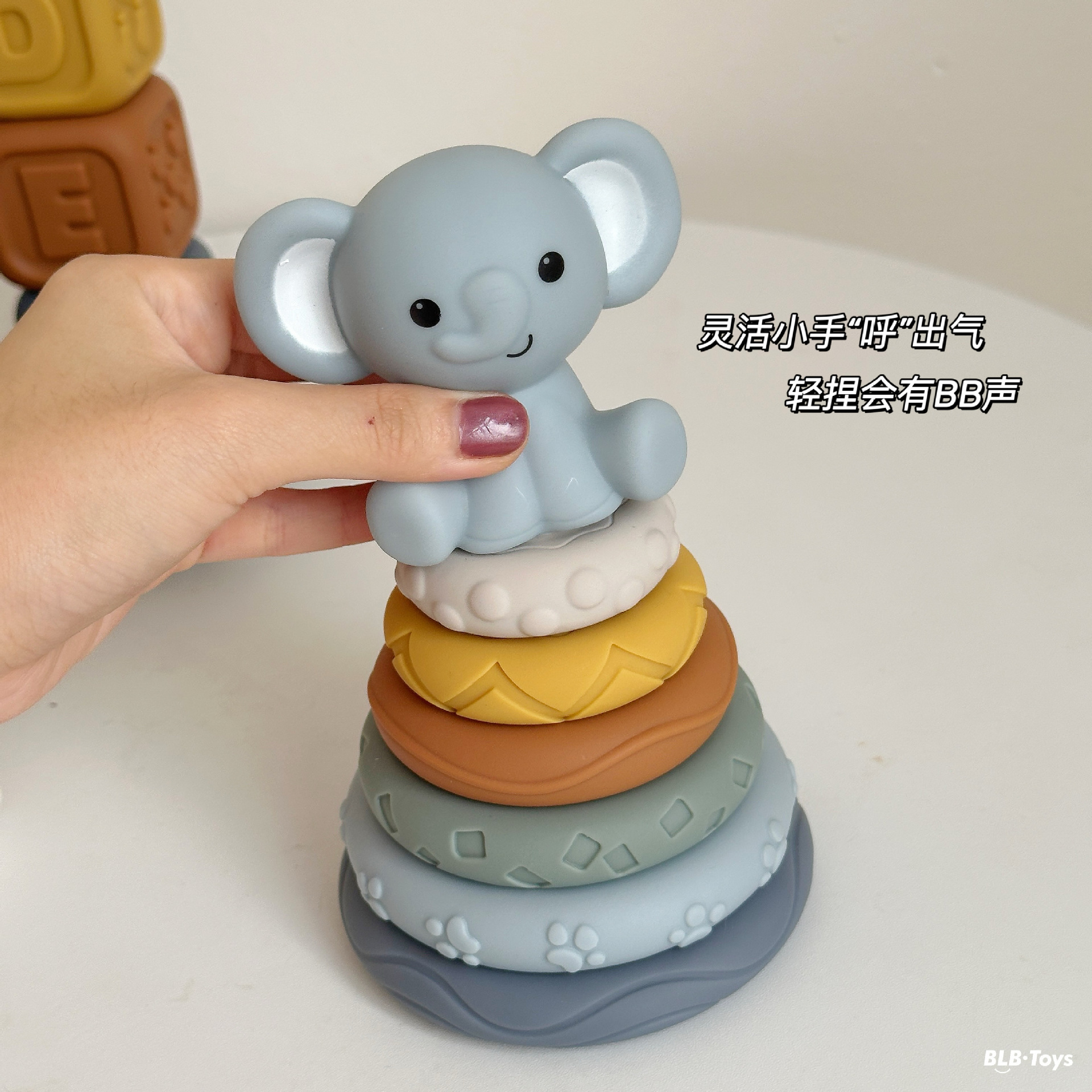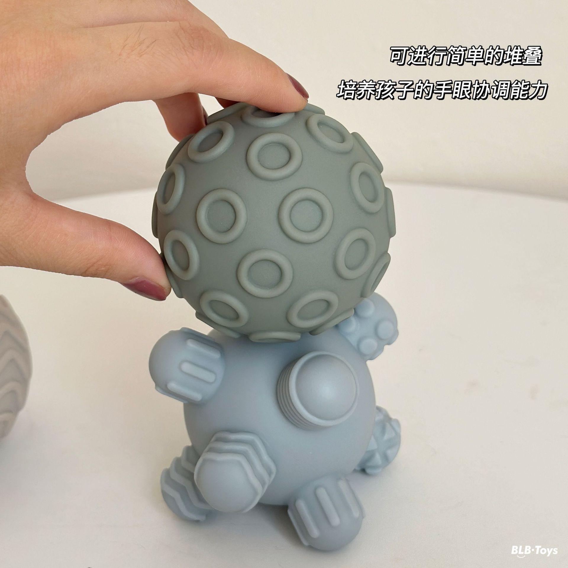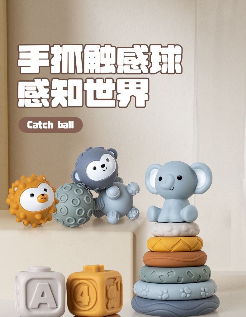 국경 간 신제품 아기 핸드 헬드 볼 장난감 부드러운 고무 스퀘어 빌딩 블록 스태킹 링 베이비 핀치 스태킹 핸드 헬드 볼스토어 가기