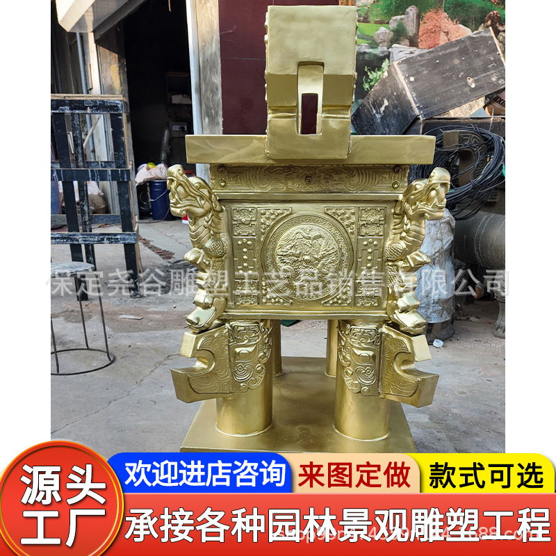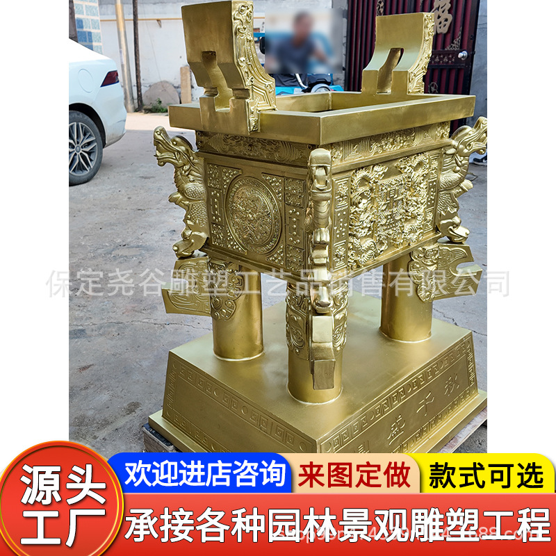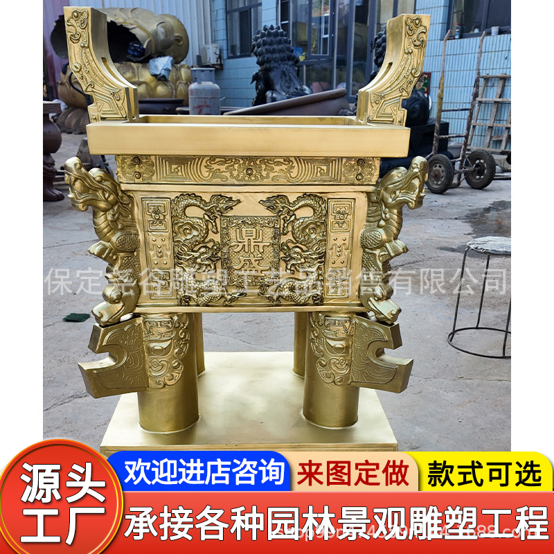 캐스트 구리 네 다리 Fang Ding 조각 서주 왕조 동물 표면 패턴 Luoyang Ding Jiu Long Ding Temple 황동 청동 재무