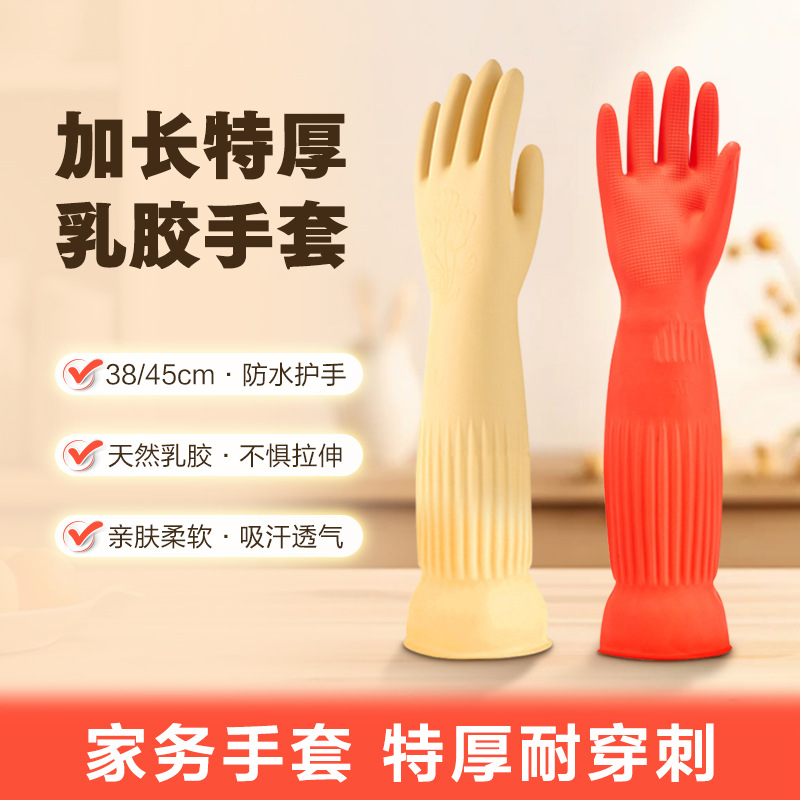 정품 Nanyang Beef Tendon 라텍스 장갑 두꺼운 가사 확장 방수 주방 식기 세척 청소 Miaojie 같은 스타일 장갑스토어 가기