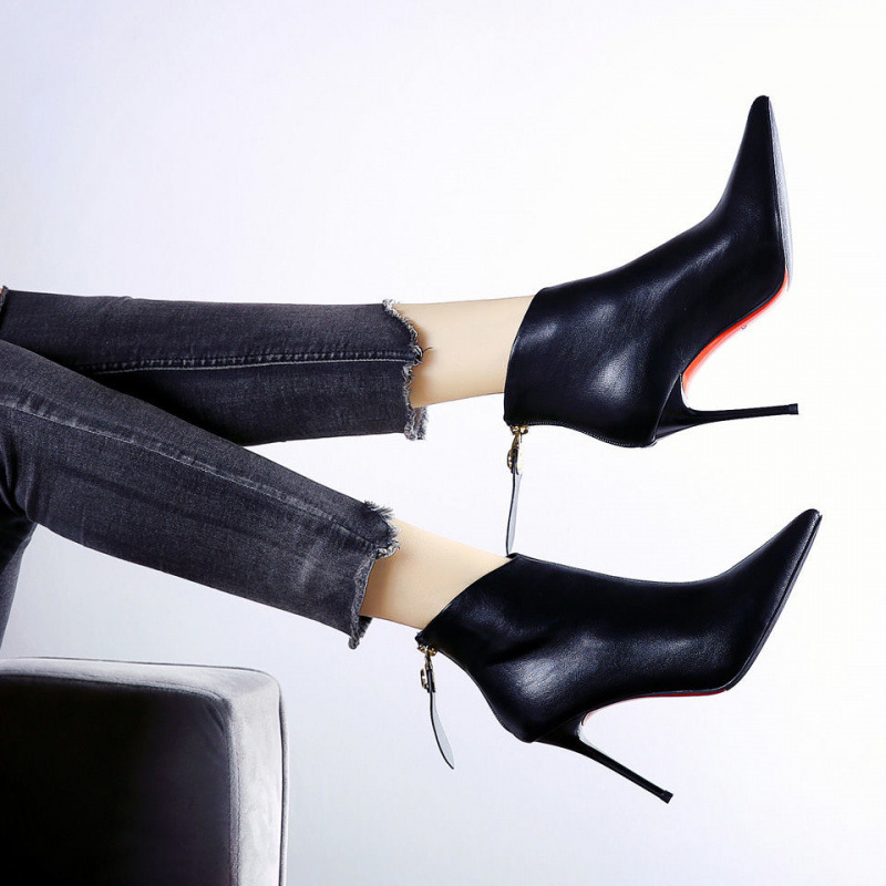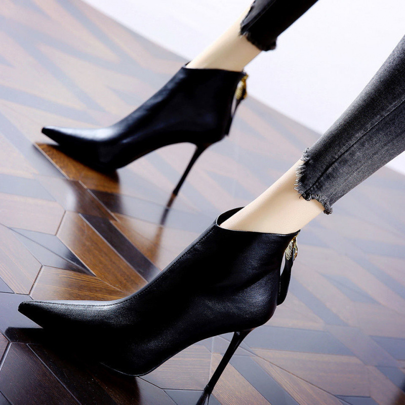 뾰족한 하이힐 플랫폼 얇은 힐 발목 부츠 여성의 2024 가을 및 겨울 새 기모 특허 가죽 섹시한 올 매치 마틴 부츠스토어 가기