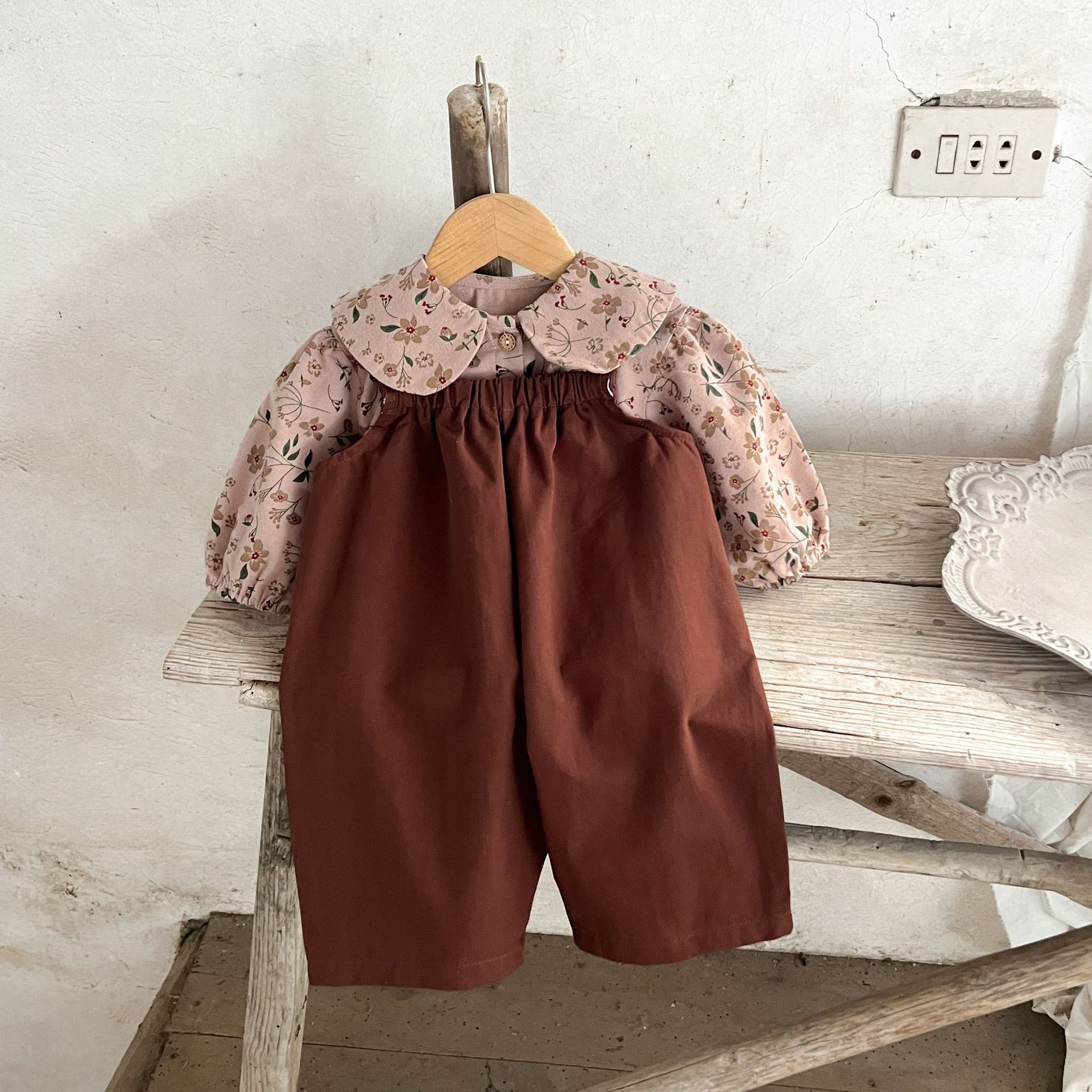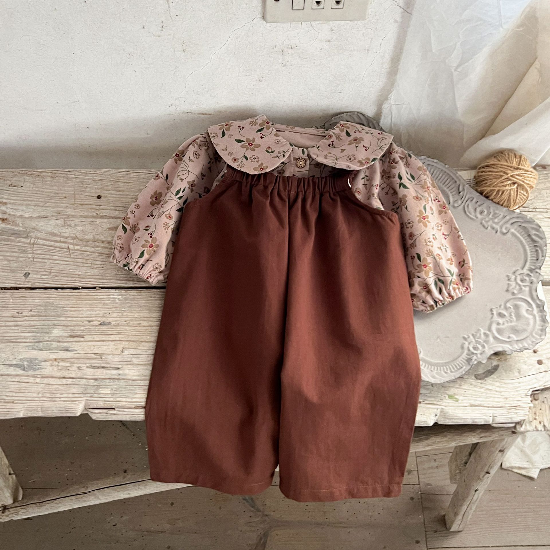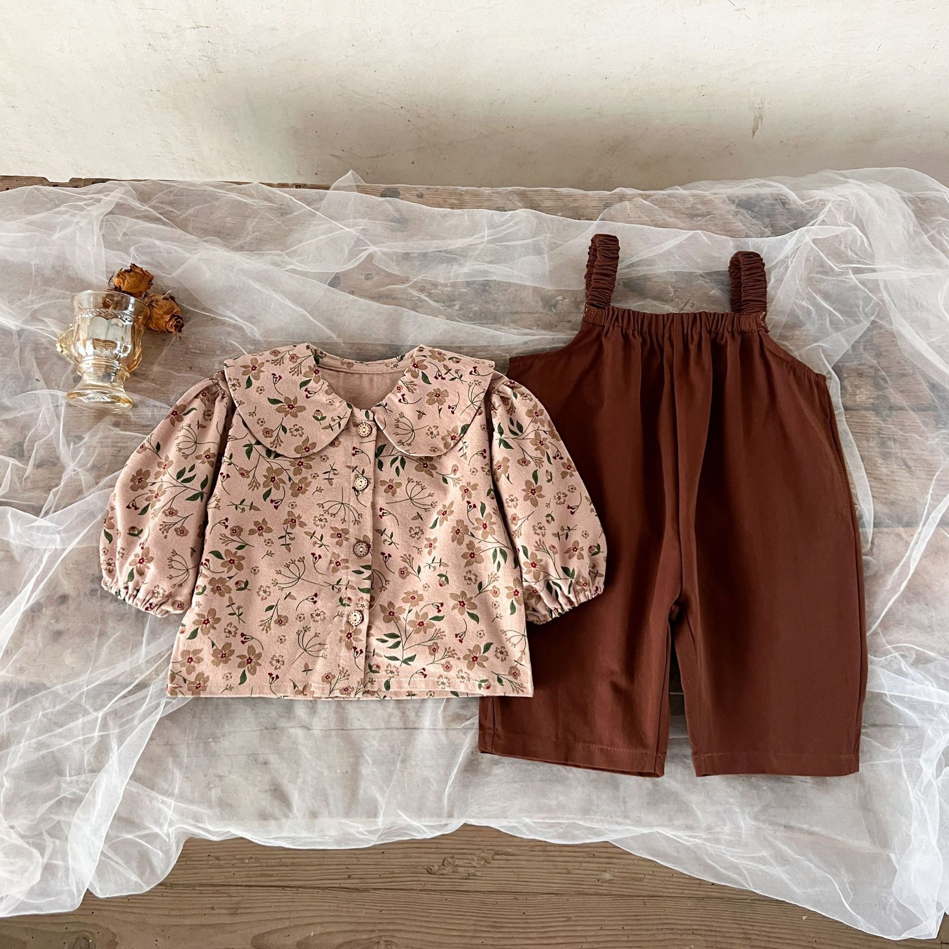 봄 · 가을 투피스 세트 세트 슬링 바지가 달린 인형의 아기 면 인쇄 인형 칼라 셔츠스토어 가기