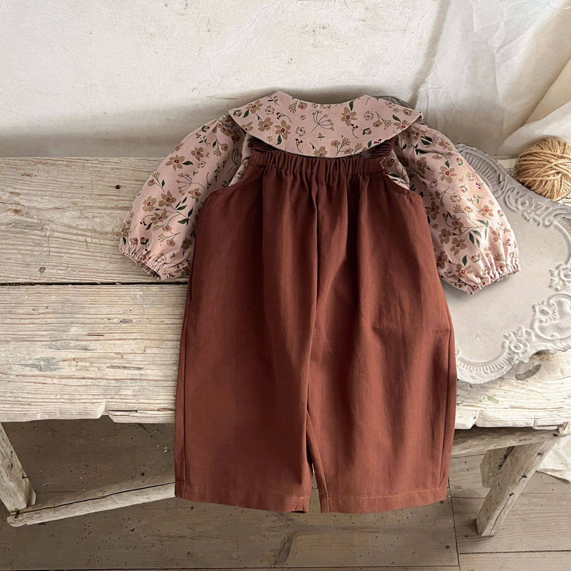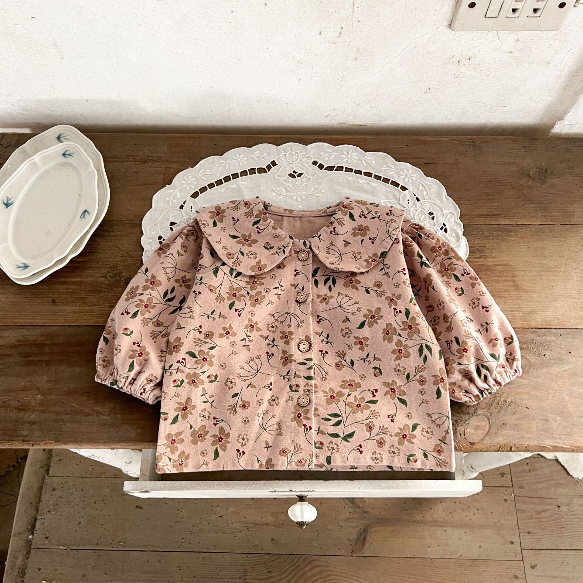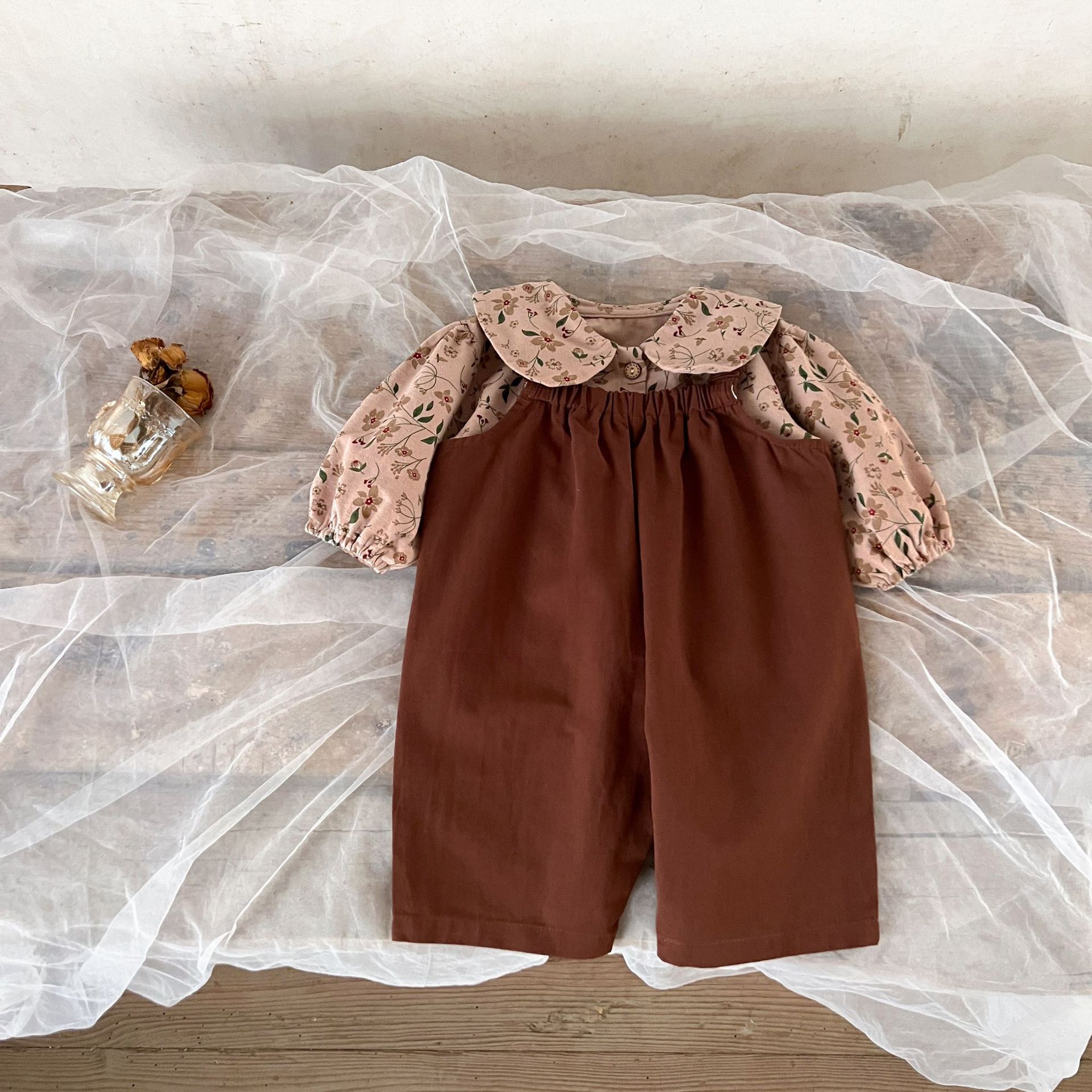 봄 · 가을 투피스 세트 세트 슬링 바지가 달린 인형의 아기 면 인쇄 인형 칼라 셔츠스토어 가기