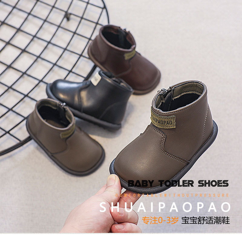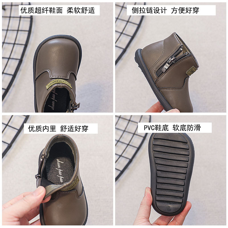 영국 스타일 어린이 캐주얼 간단한 스티칭 사이드 지퍼 작은 가죽 부츠 새로운 소년 소녀 가볍고 편안한 올 매치 싱글 레이어 부츠스토어 가기