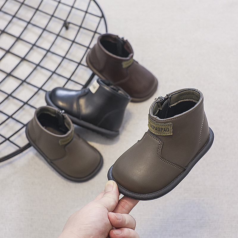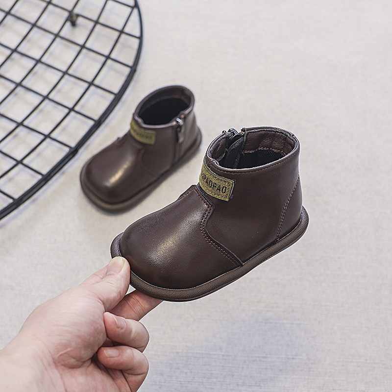 영국 스타일 어린이 캐주얼 간단한 스티칭 사이드 지퍼 작은 가죽 부츠 새로운 소년 소녀 가볍고 편안한 올 매치 싱글 레이어 부츠