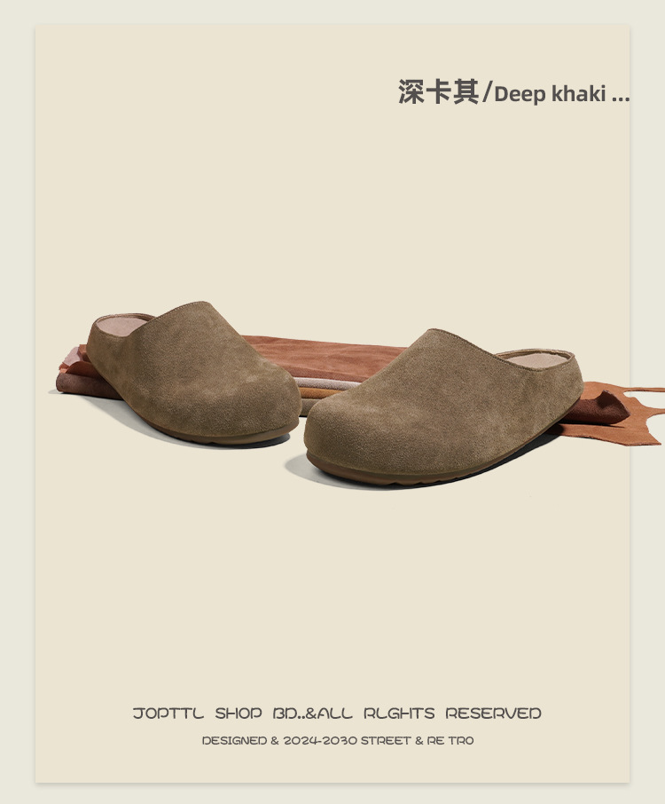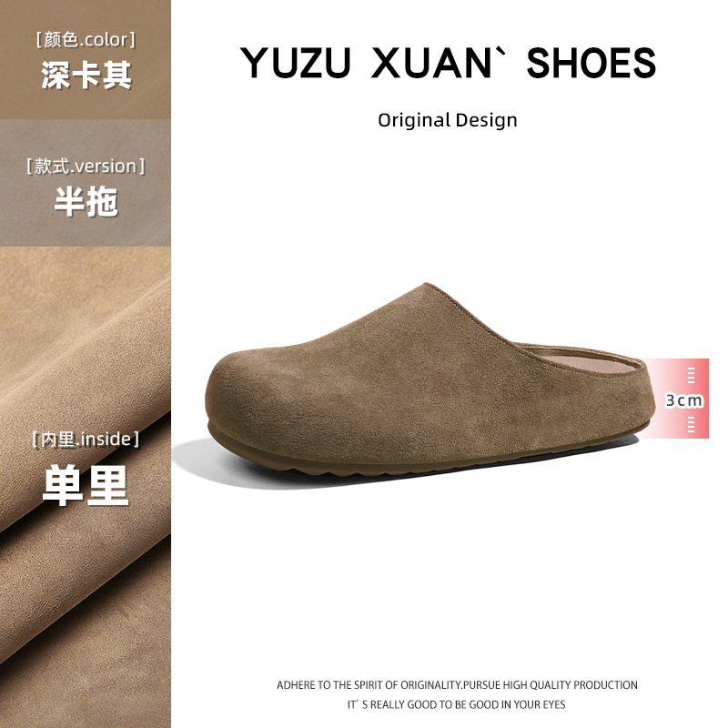 Cowhide 두꺼운 밑창 게으른 스타일 Baotou Slip-on 하프 슬립 온 여성용 버켄 슬리퍼 게으른 행 레트로 스타일 간단한 외부 신발