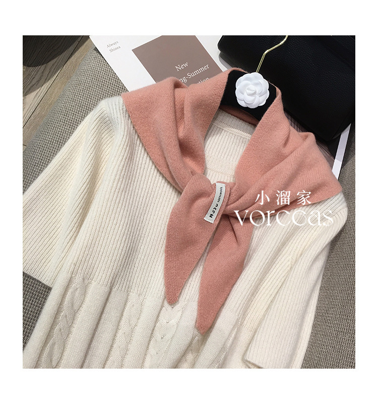 한국 싱글 WOOL100 순수 양모 니트 삼각형 스카프 목도리 니트 작은 스카프 다기능 따뜻한 여성의 머리 스카프
