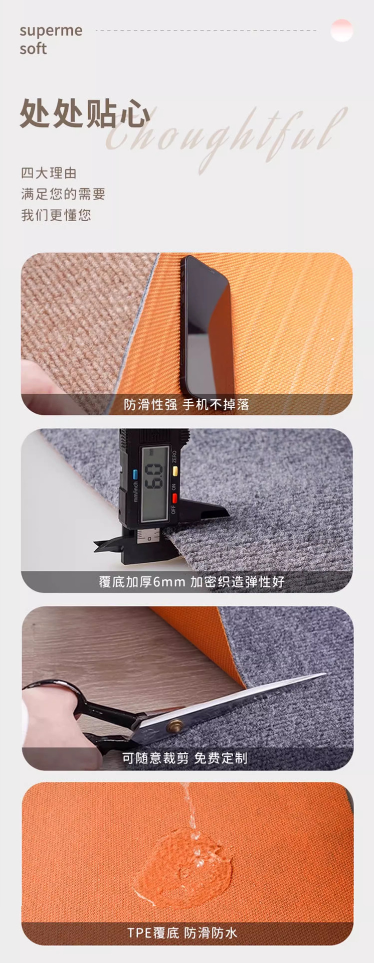 • 회색 두꺼운 실크 브러시드 TPE 바닥