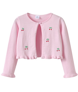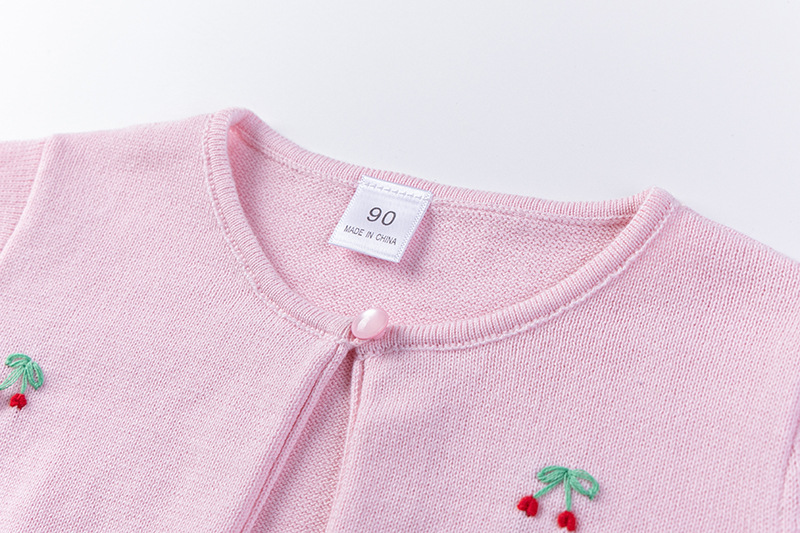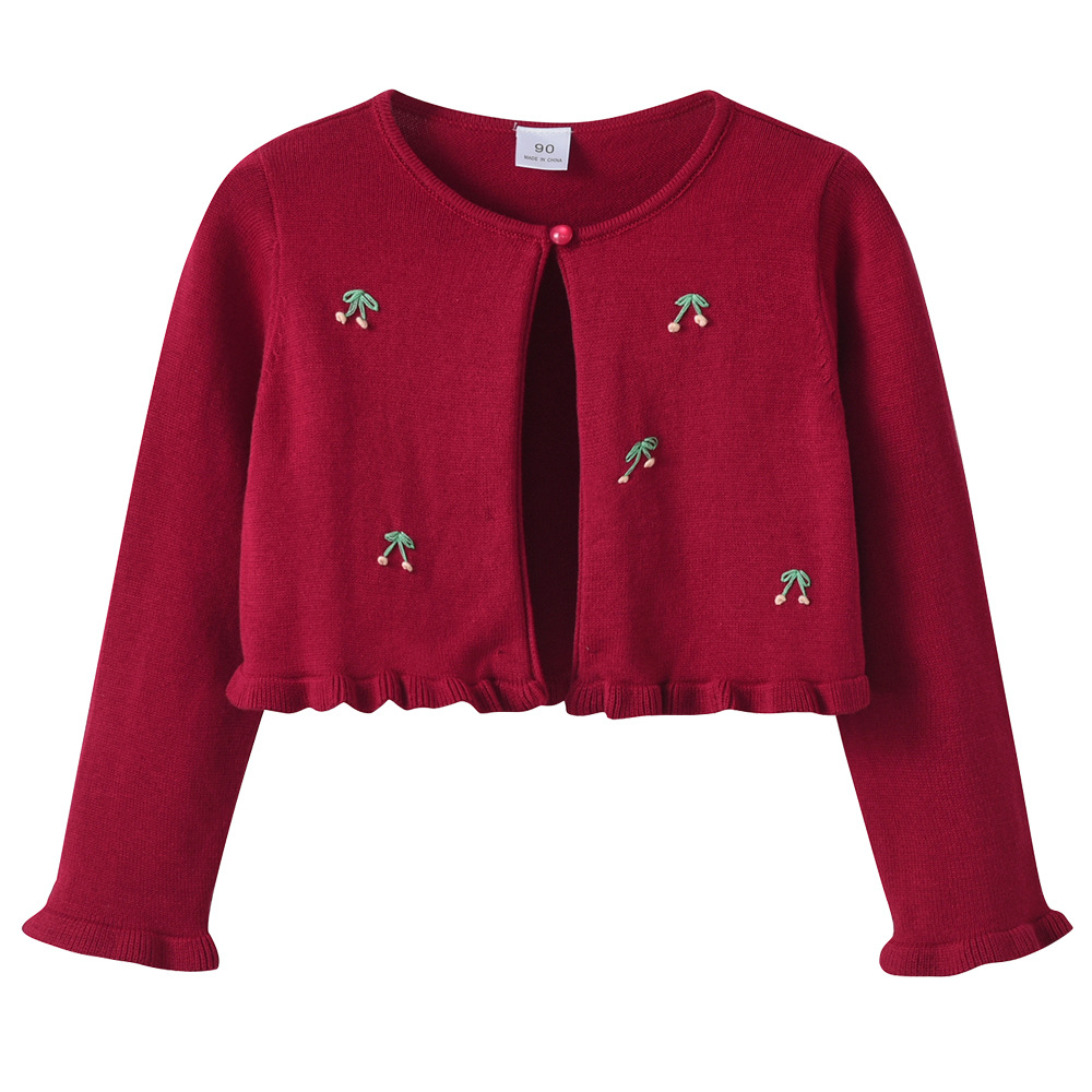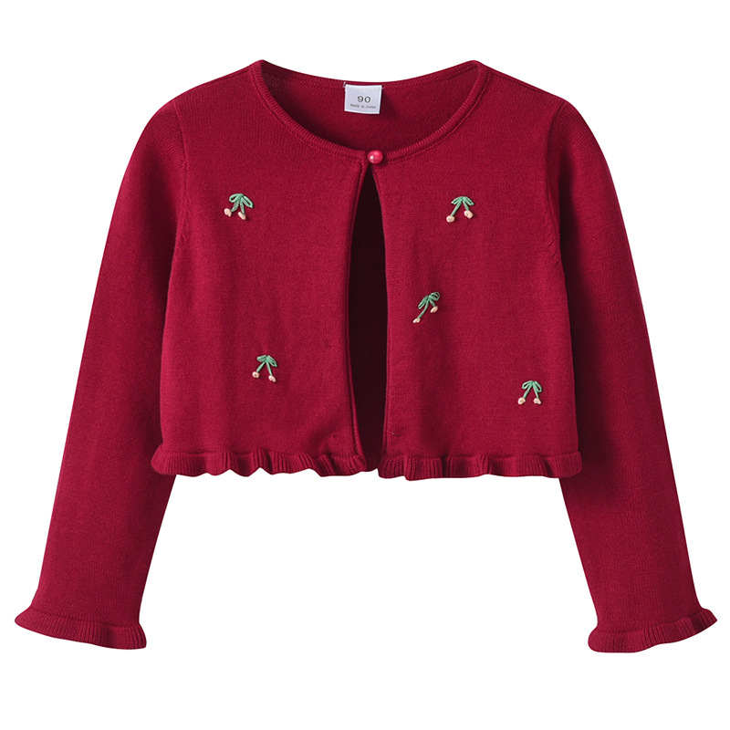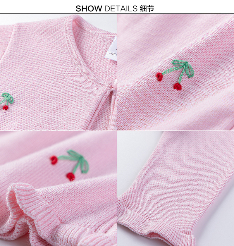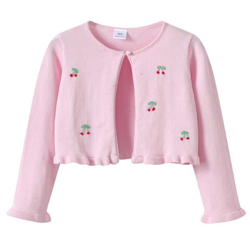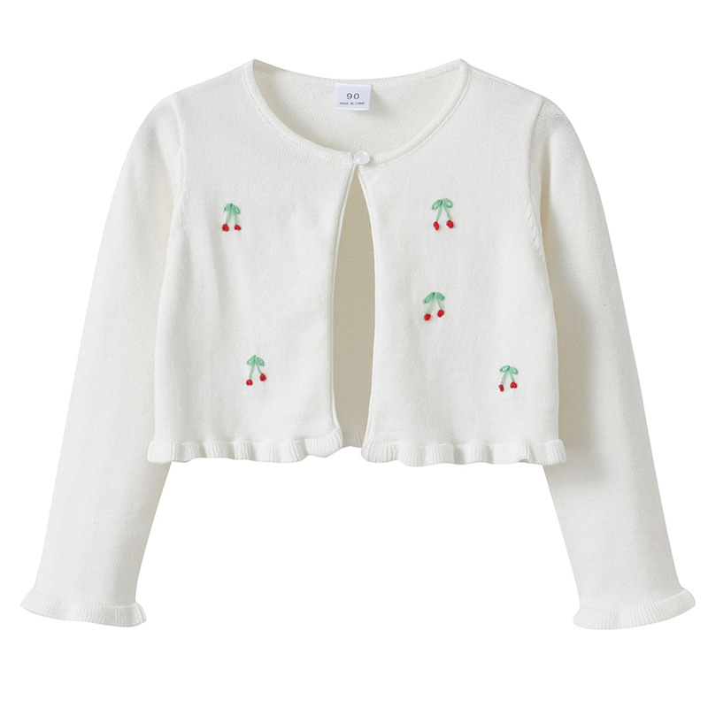 국경 간 봄과 가을 둥근 목 Auricularius Girls 니트 카디건 순수 코튼 후크 체리 아기 스웨터 목도리 에어컨 셔츠