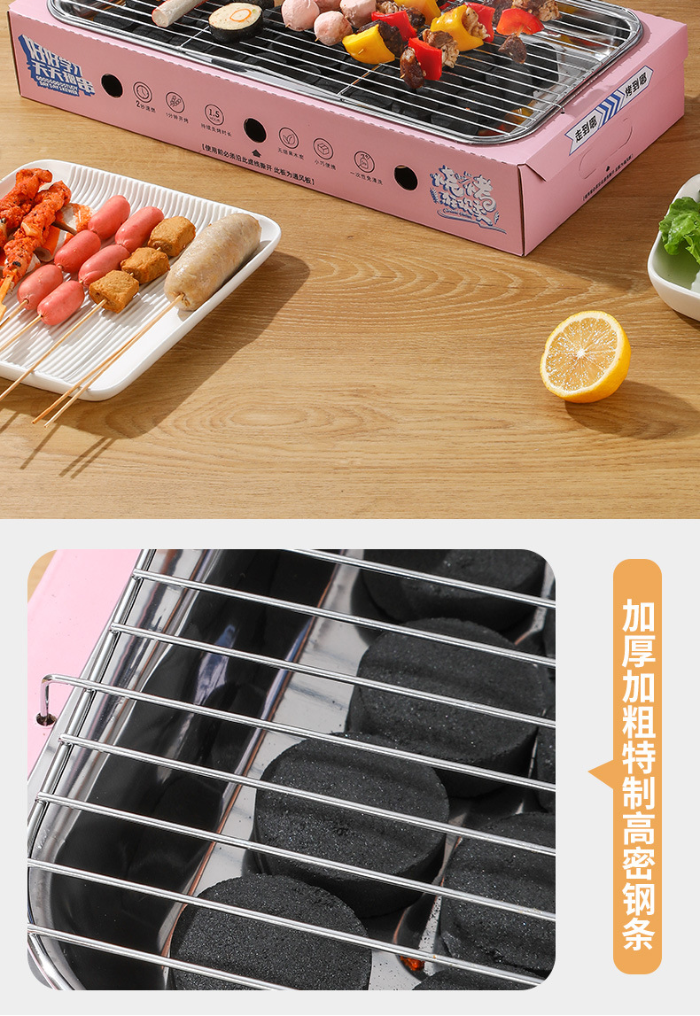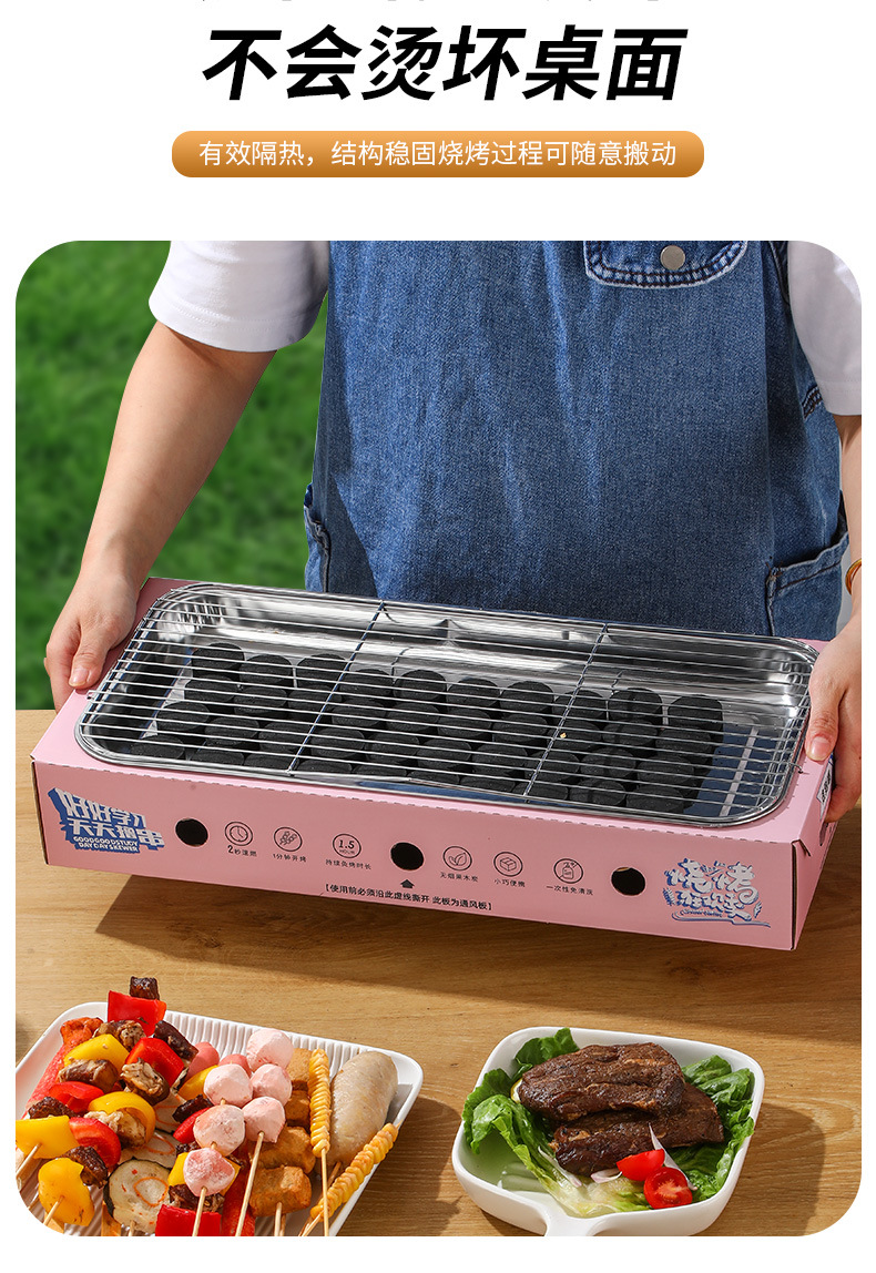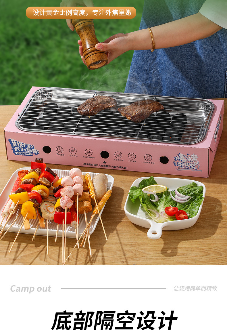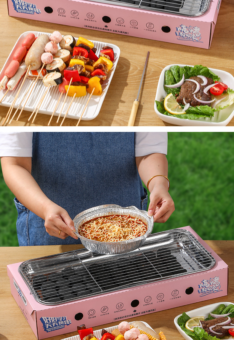 폭발성 유형 일회용 휴대용 일회용 스테인레스 스틸 바베큐 오븐 가정용 야외 숯 바베큐 오븐 배달 빠른 연소 과일 숯