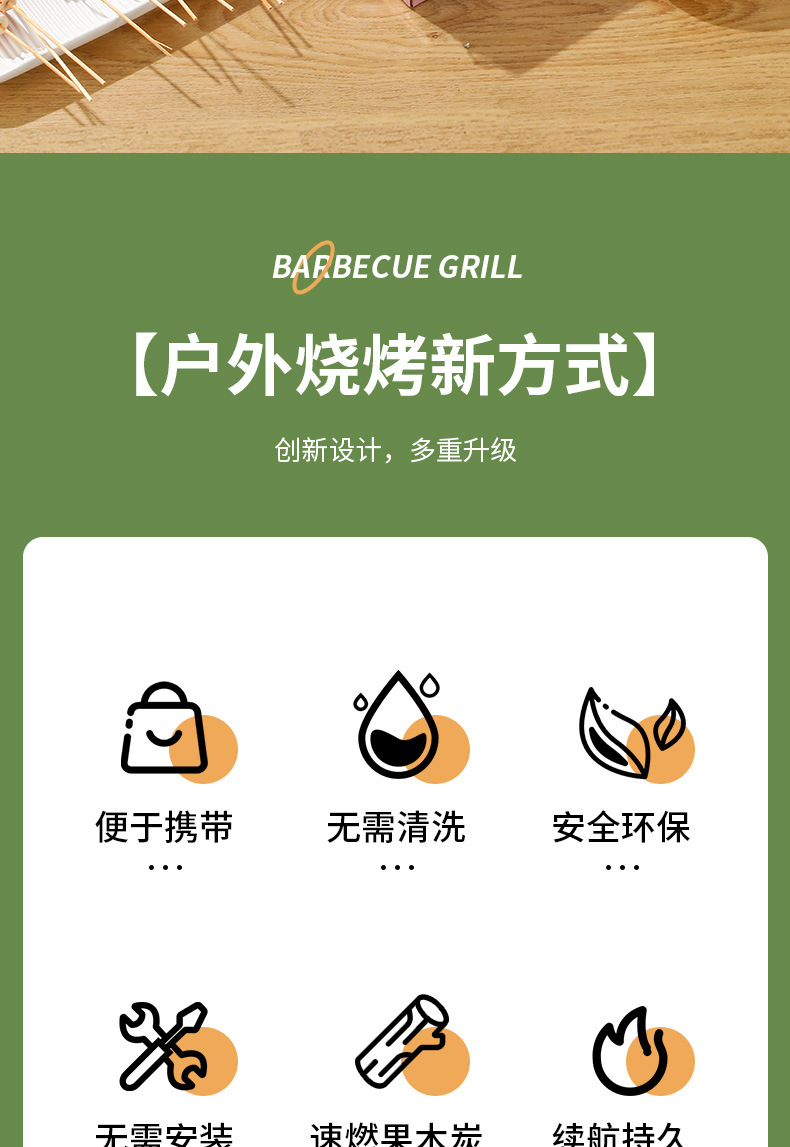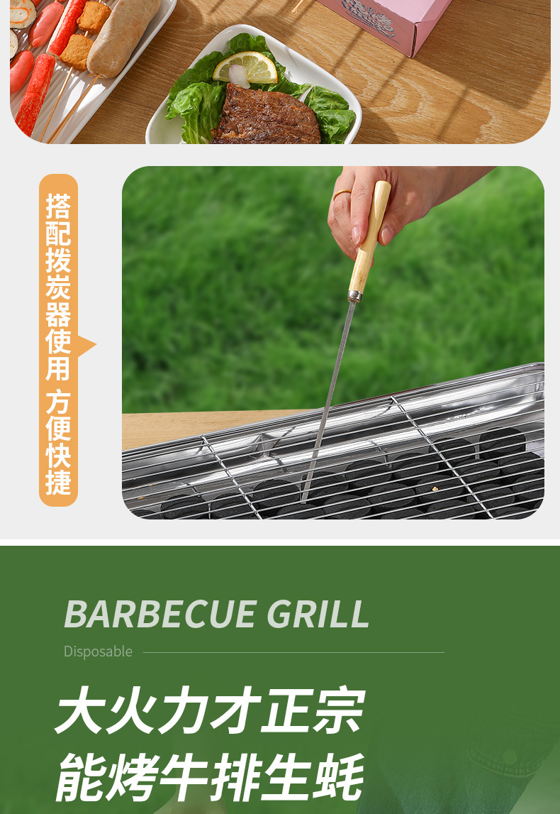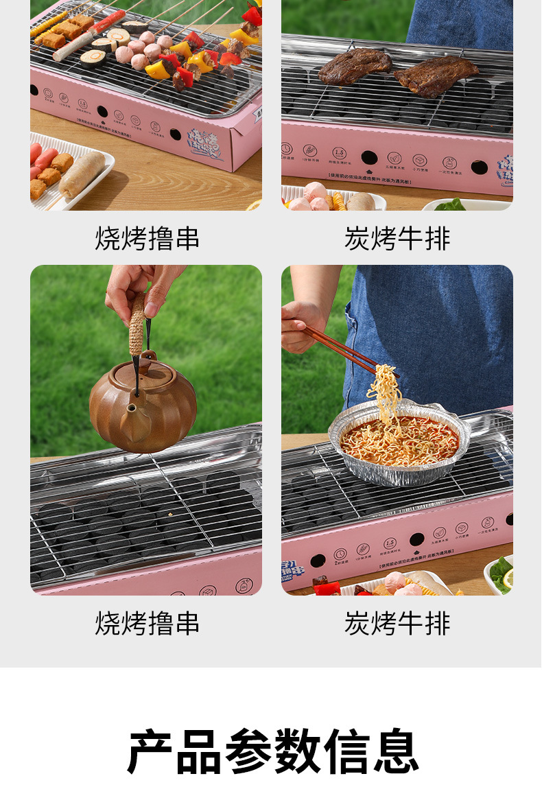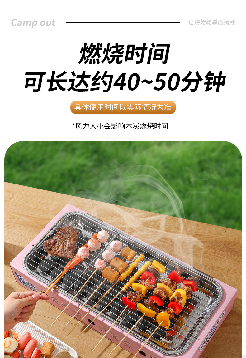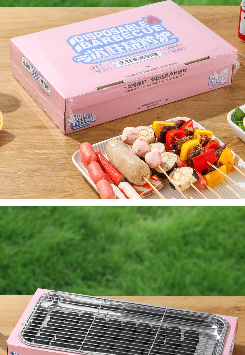 폭발성 유형 일회용 휴대용 일회용 스테인레스 스틸 바베큐 오븐 가정용 야외 숯 바베큐 오븐 배달 빠른 연소 과일 숯