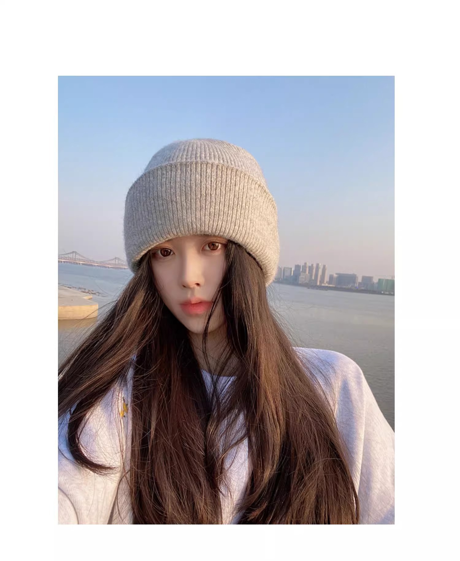 양모 모자 여성의 2024 새로운 겨울 느슨한 따뜻한 양모 니트 모자 게으른 스타일 회색 차가운 모자스토어 가기