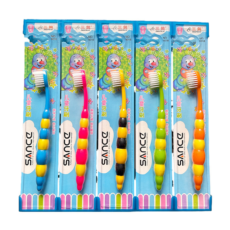 도매 3 잭 어린이 칫솔 창조적 인 애벌레 만화 부드러운 머리 청소 칫솔 미세 머리 작은 머리 칫솔
