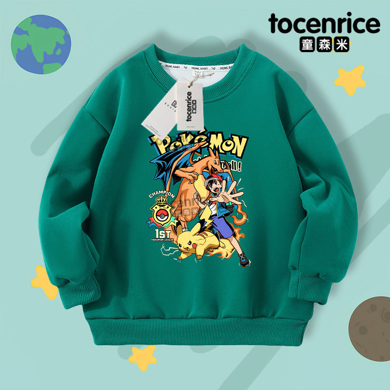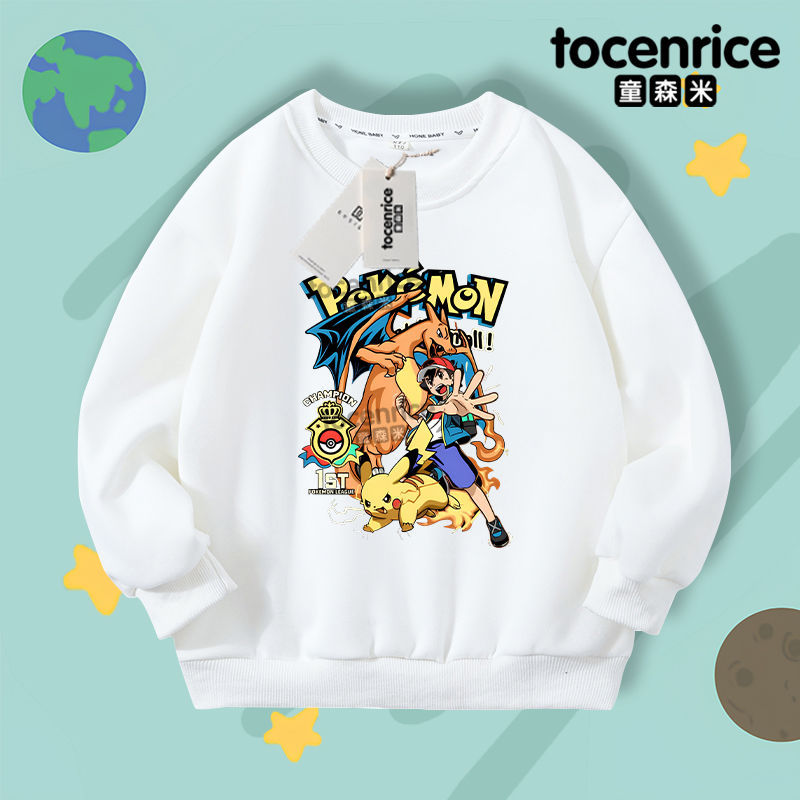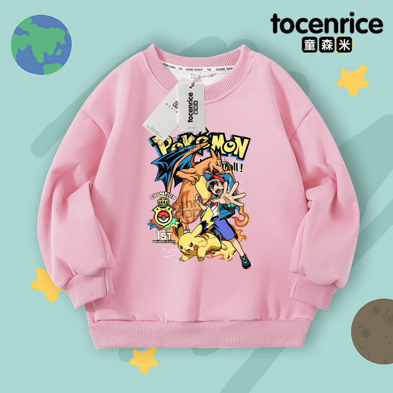 포켓몬 스웨트 셔츠 새로운 어린이 피카추 틈새 최고 가을 봄과 가을 소년 긴 소매 캐주얼스토어 가기