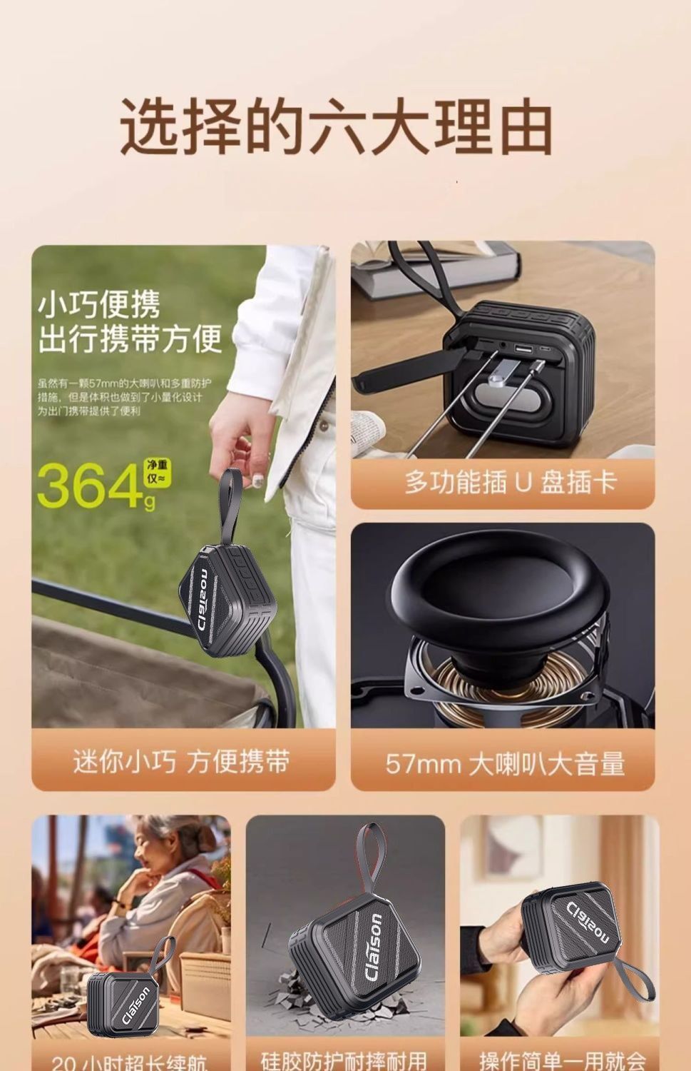 새로운 캠핑 미니 스피커 방수 야외 휴대용 대용량 서브 우퍼 긴 배터리 수명 블루투스 소형 스피커스토어 가기