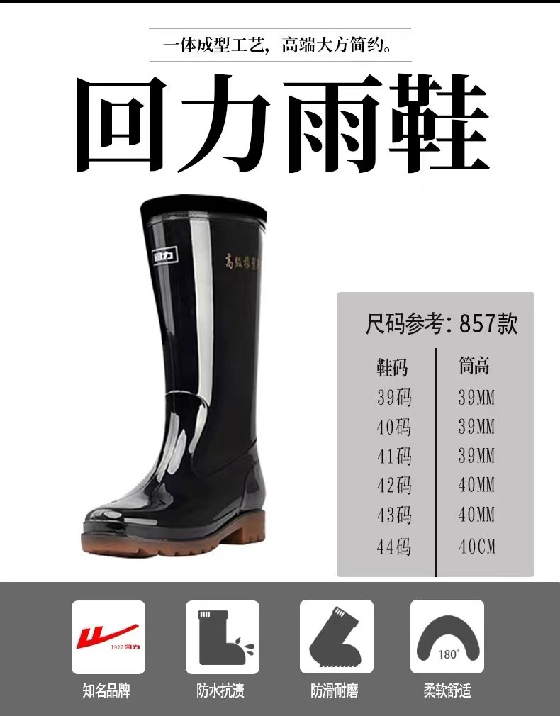 상하이 Huili 비 신발 857 높은 비 부츠 노동 보호 물 신발 쇠고기 텐더 두꺼운 바닥 작업 사이트 고무 신발 도매