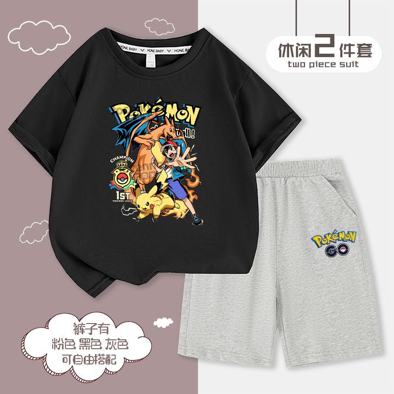 포켓몬 소년 여름 원피스 세트 어린이 반팔 티셔츠 2024 새로운 유행 아동복 여름 소녀 여름 원피스스토어 가기
