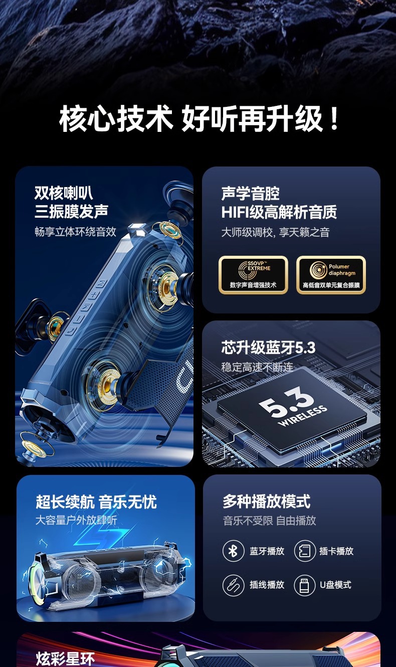 Coleson 야외 자동차 서브 우퍼 오디오 듀얼 진동기 필름 휴대용 듀얼 스피커 무선 방수 카드 블루투스 스피커스토어 가기