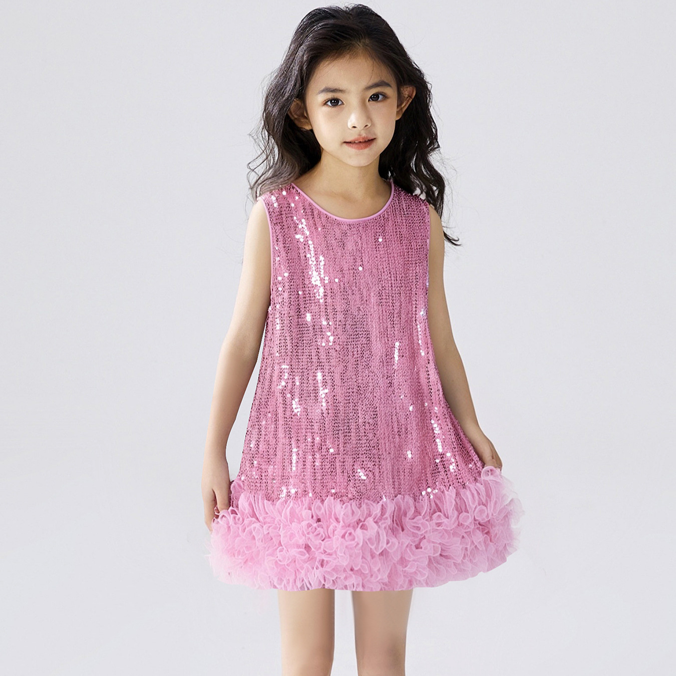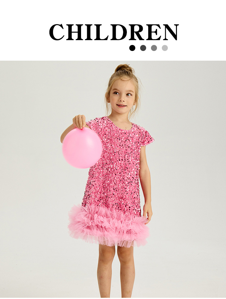 여아용 반짝이 조끼 드레스 2025 크리스마스 신상품 크로스보더 반팔 어린이 공주 드레스 파티 드레스스토어 가기
