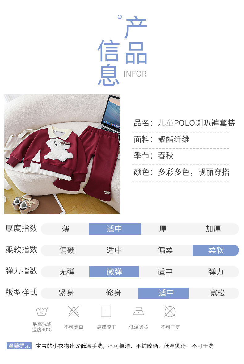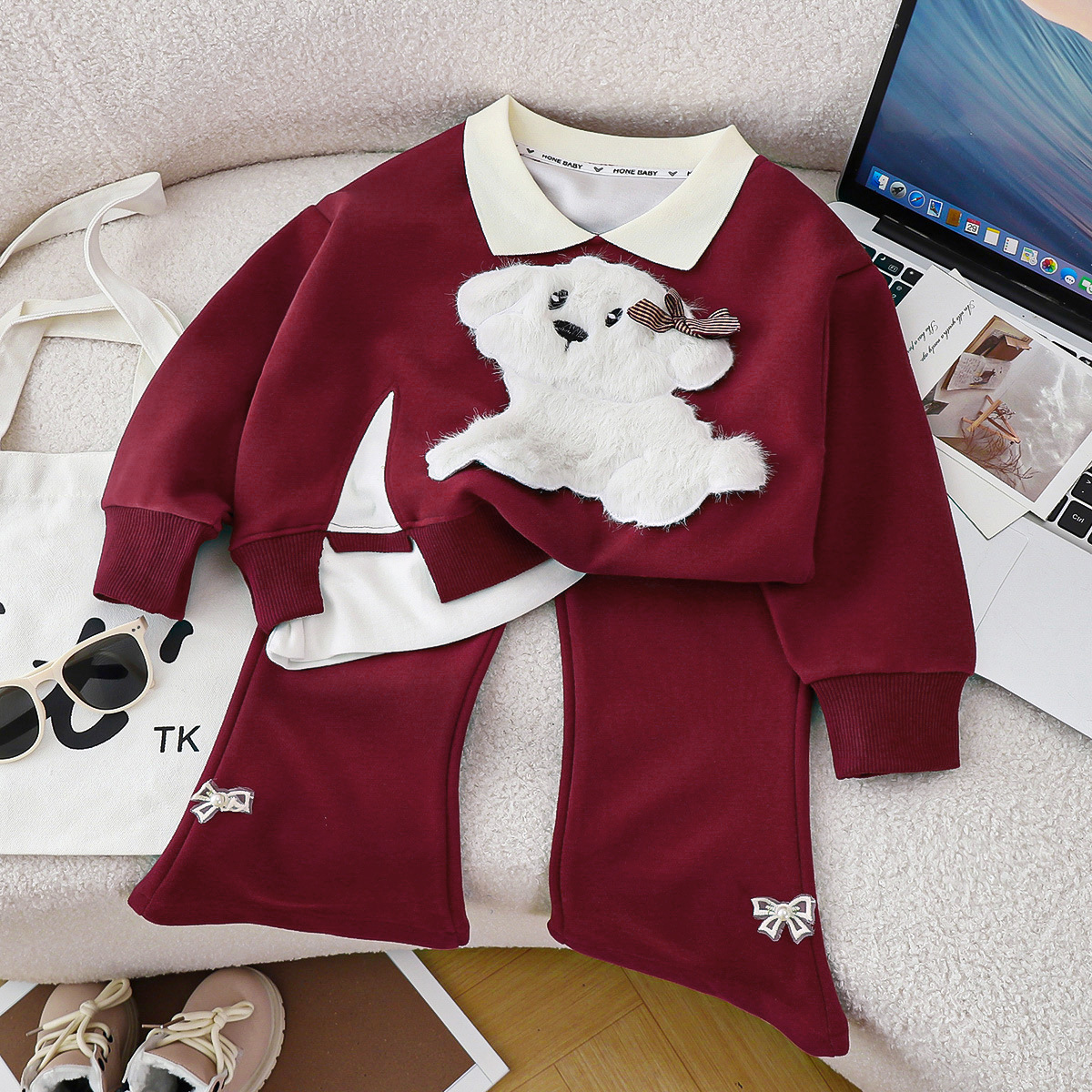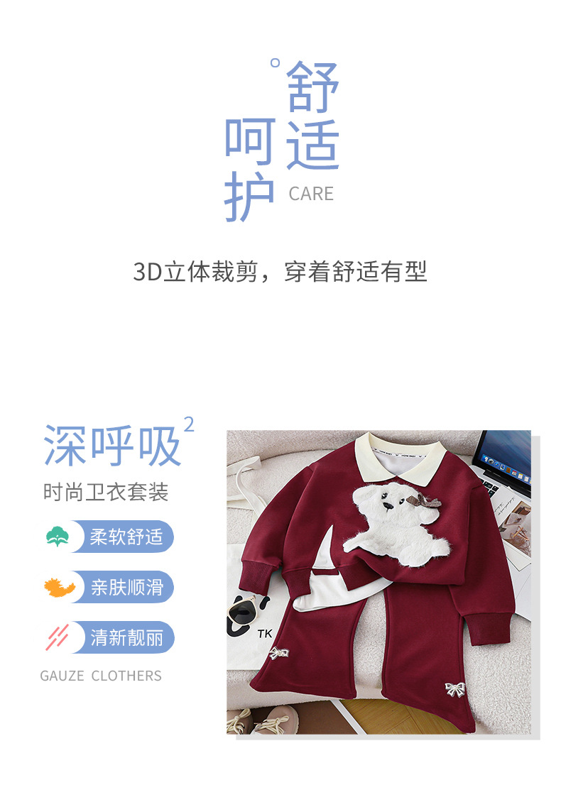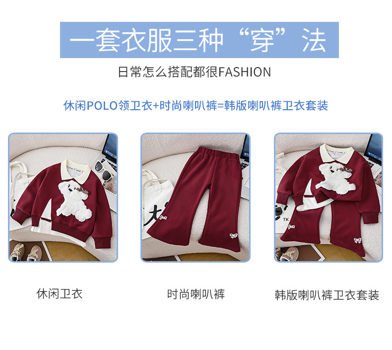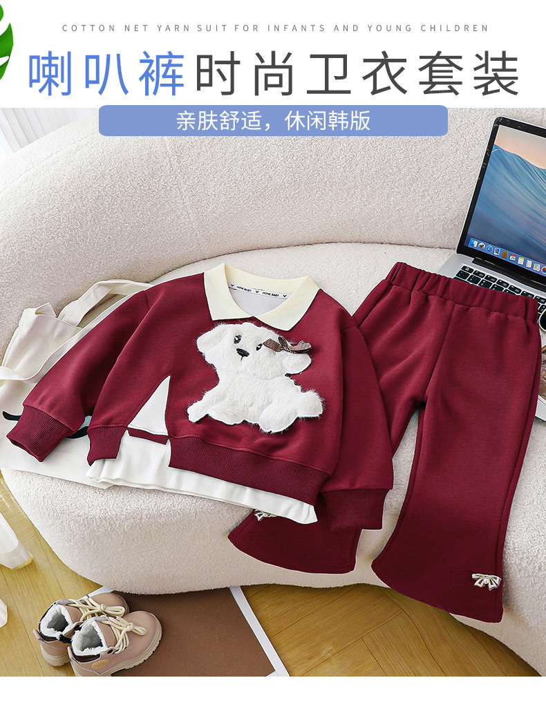 새로운 2024 폭발 앙골라 레드 걸스 세트 새로운 귀여운 봄과 가을 풀오버 스티칭 탑 세트스토어 가기