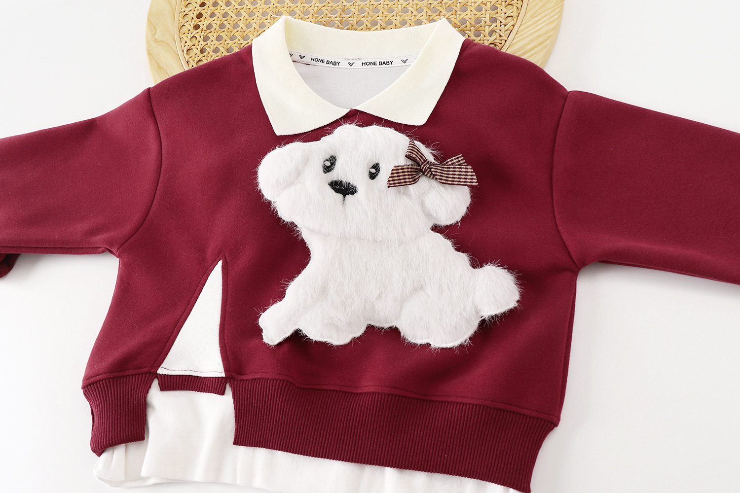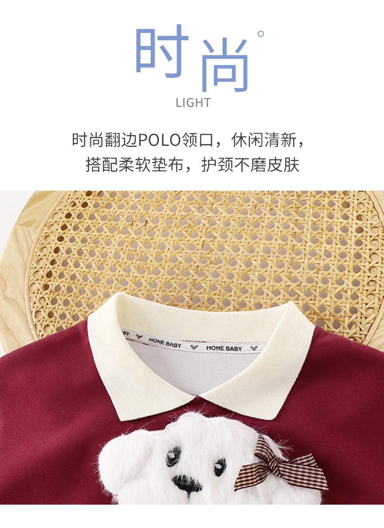 새로운 2024 폭발 앙골라 레드 걸스 세트 새로운 귀여운 봄과 가을 풀오버 스티칭 탑 세트