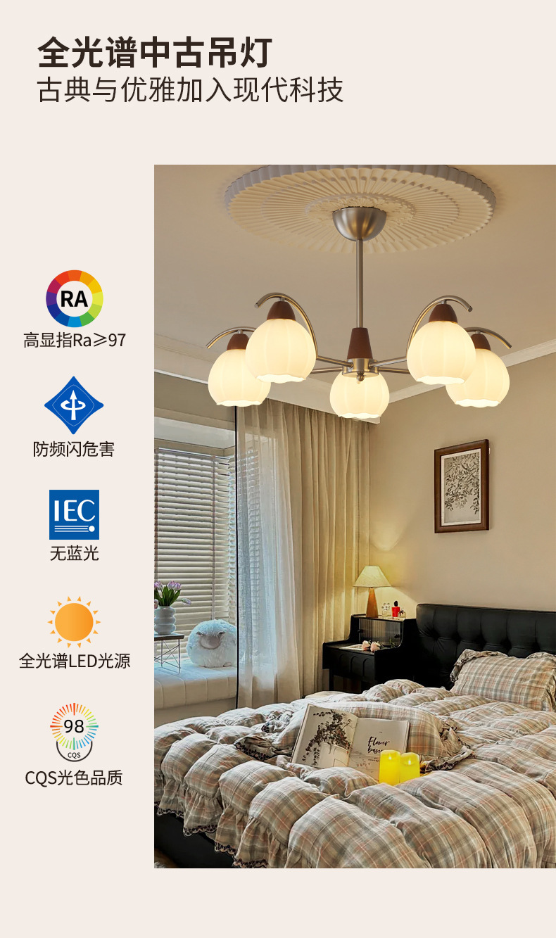 프랑스 레트로 중국 스타일 거실 샹들리에 아메리칸 스타일 다이닝 룸 골동품 스타일 침실 호두 유리 램프 중산 램프스토어 가기