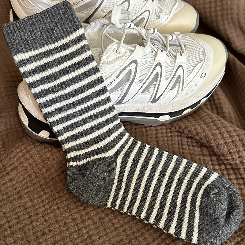 가을과 겨울 새로운 뼈없는 한국어 버전의 부드러운 왁스 줄무늬 조커 컬러 양말 여성 도매 면 양말 작은 고구마 폭발스토어 가기