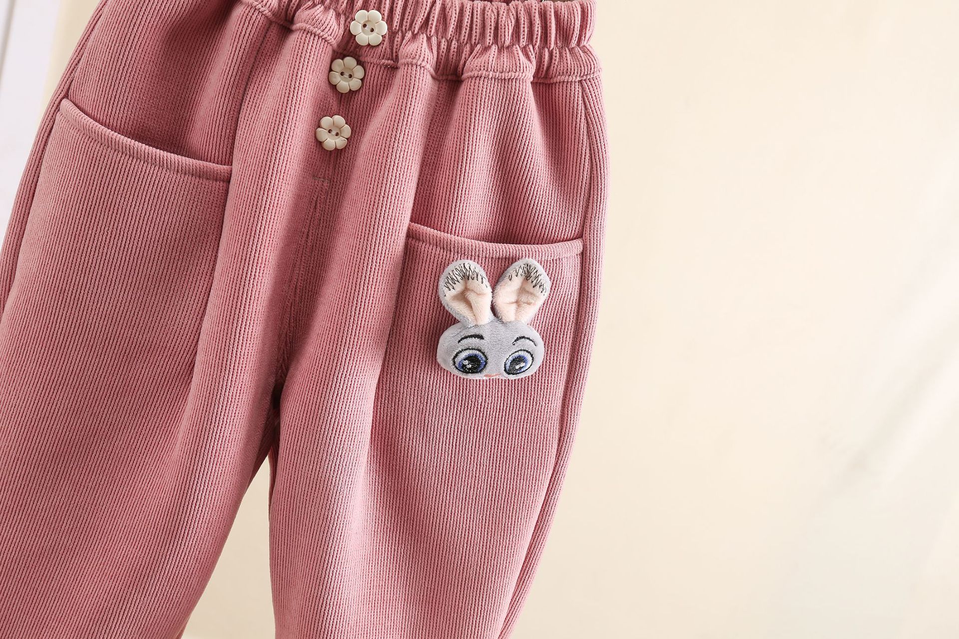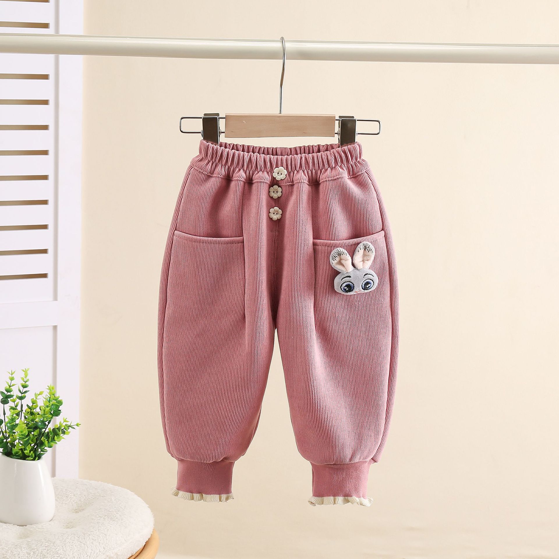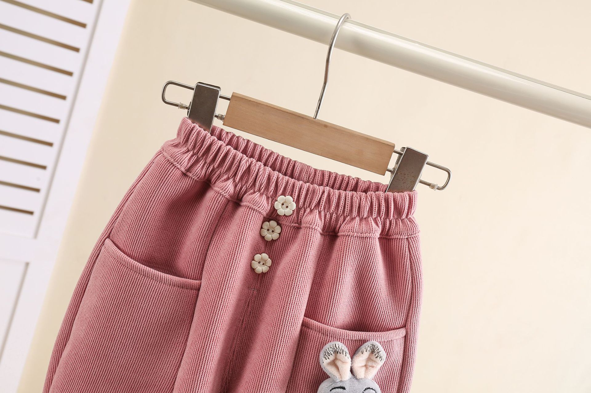새로운 겨울 바지의 한국어 버전 어린이 겨울 기모 입체 토끼 머리 따뜻하고 편안한 캐주얼 바지 제조 업체 도매