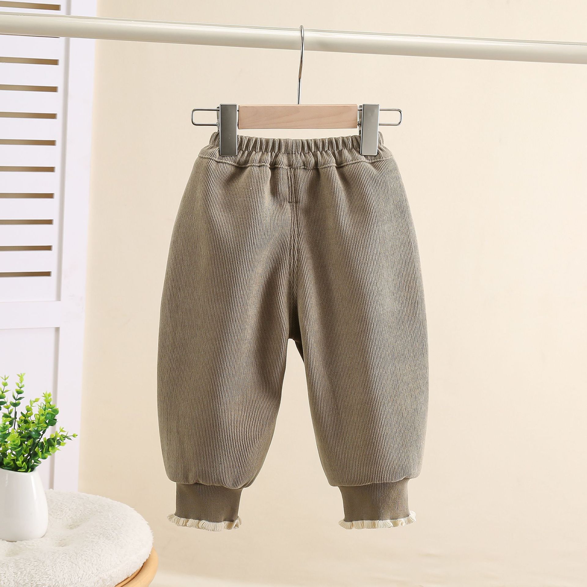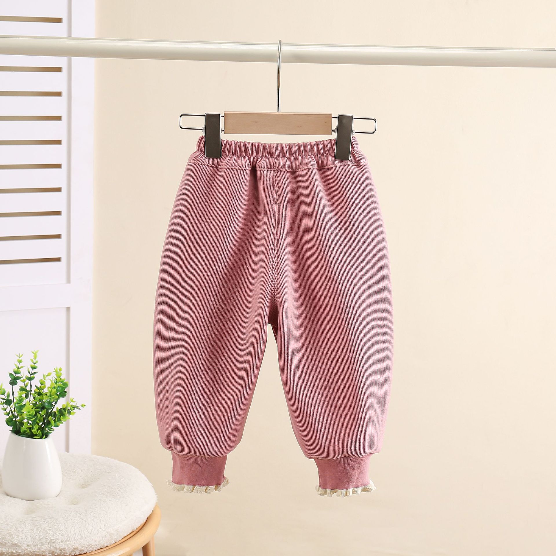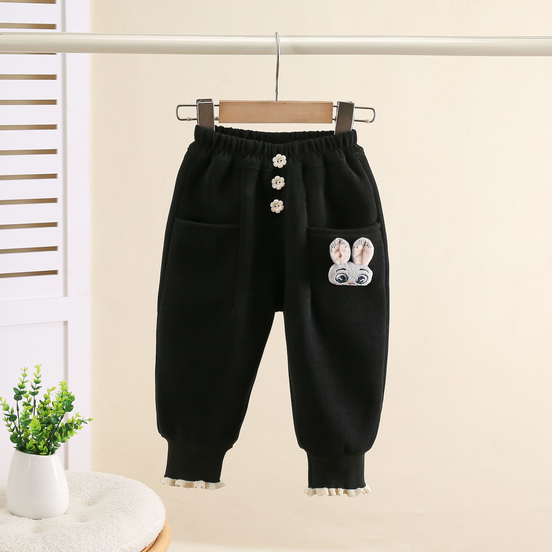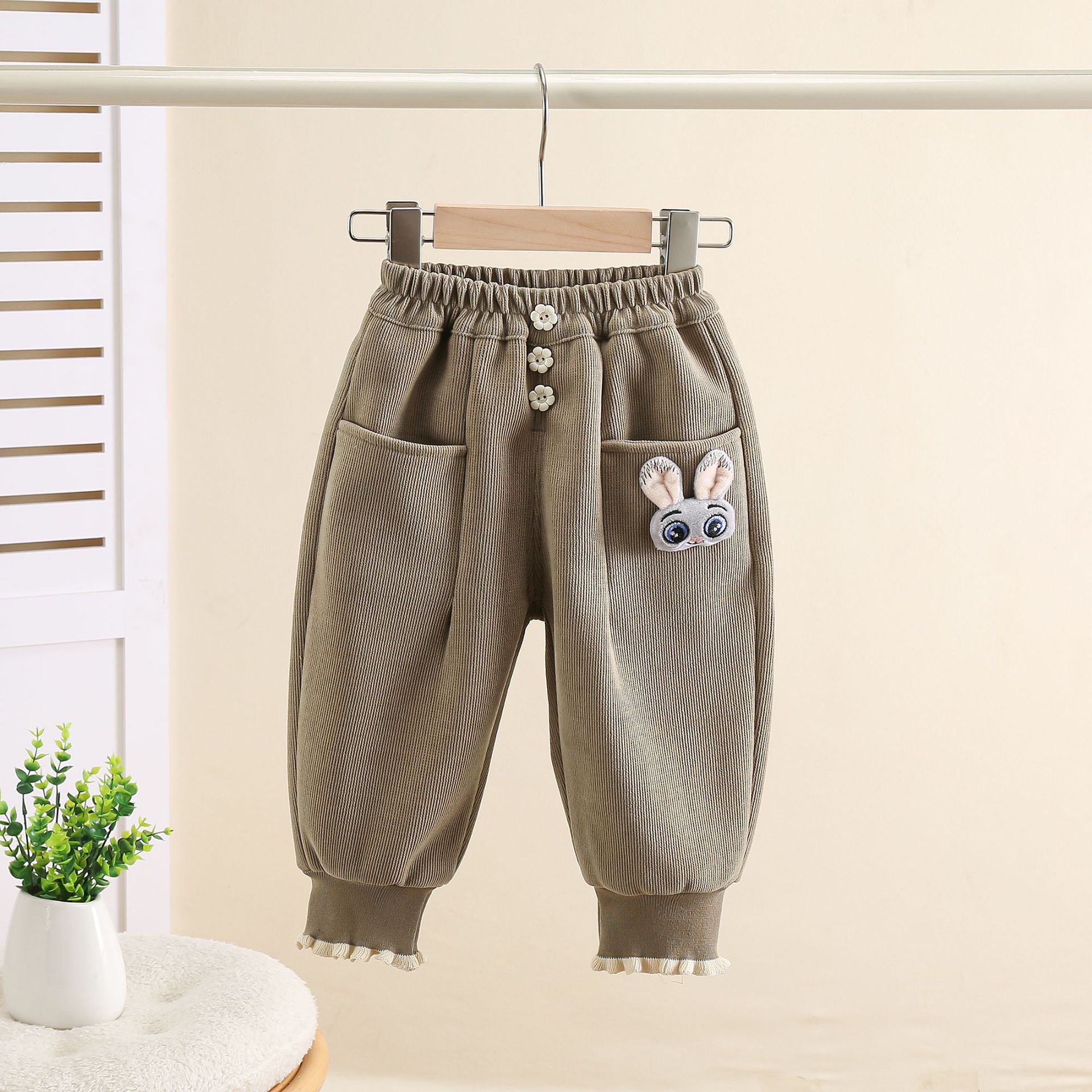 새로운 겨울 바지의 한국어 버전 어린이 겨울 기모 입체 토끼 머리 따뜻하고 편안한 캐주얼 바지 제조 업체 도매