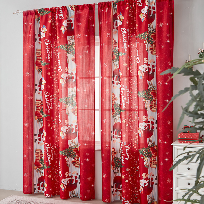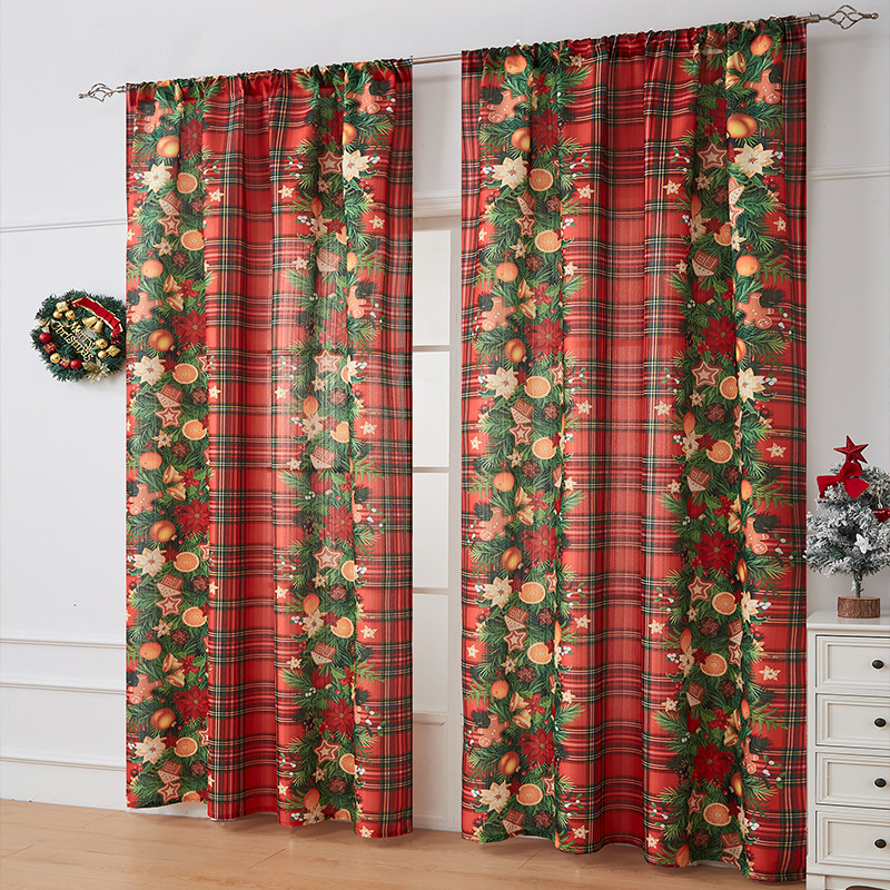 새로운 미국 크리스마스 커튼 크리스마스 테마 인쇄 된 천 음영 직사각형 아름답게 장식 패브릭 완성 커튼