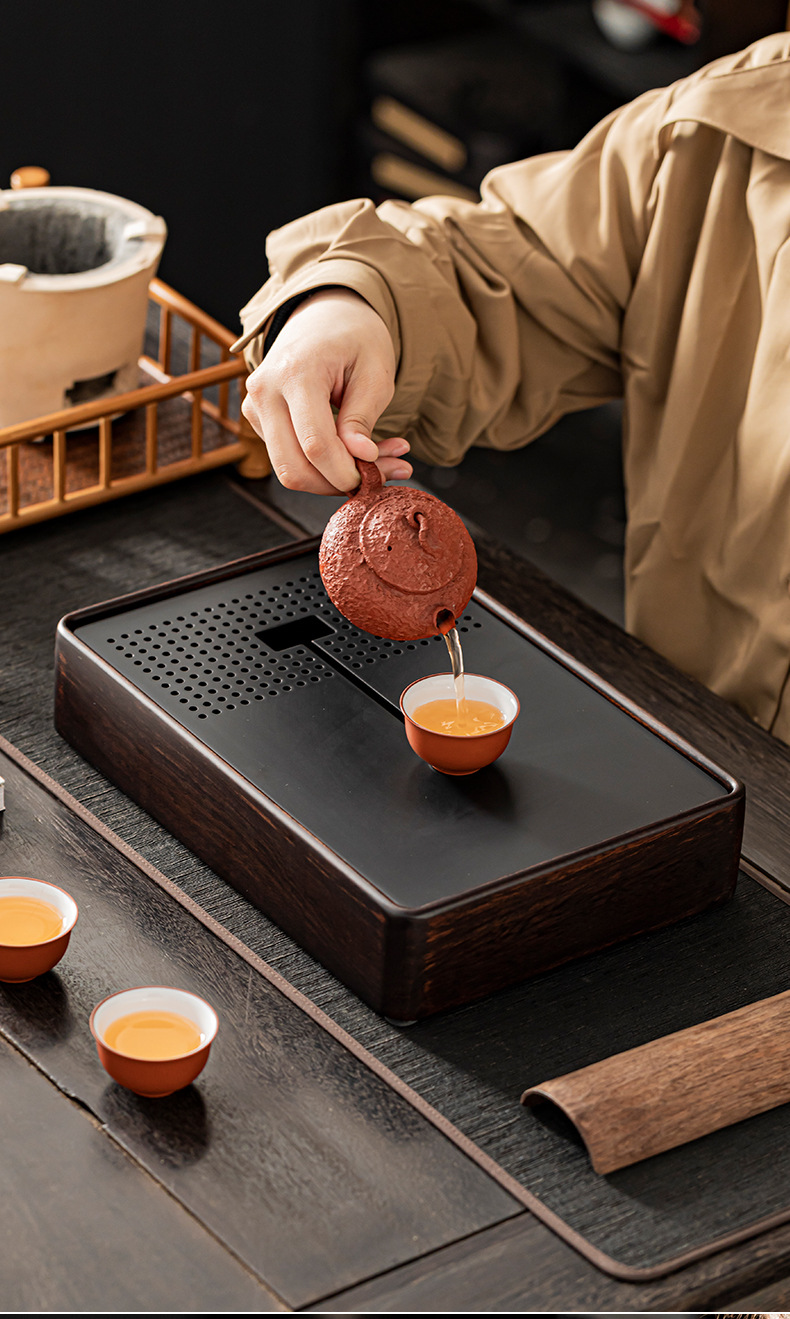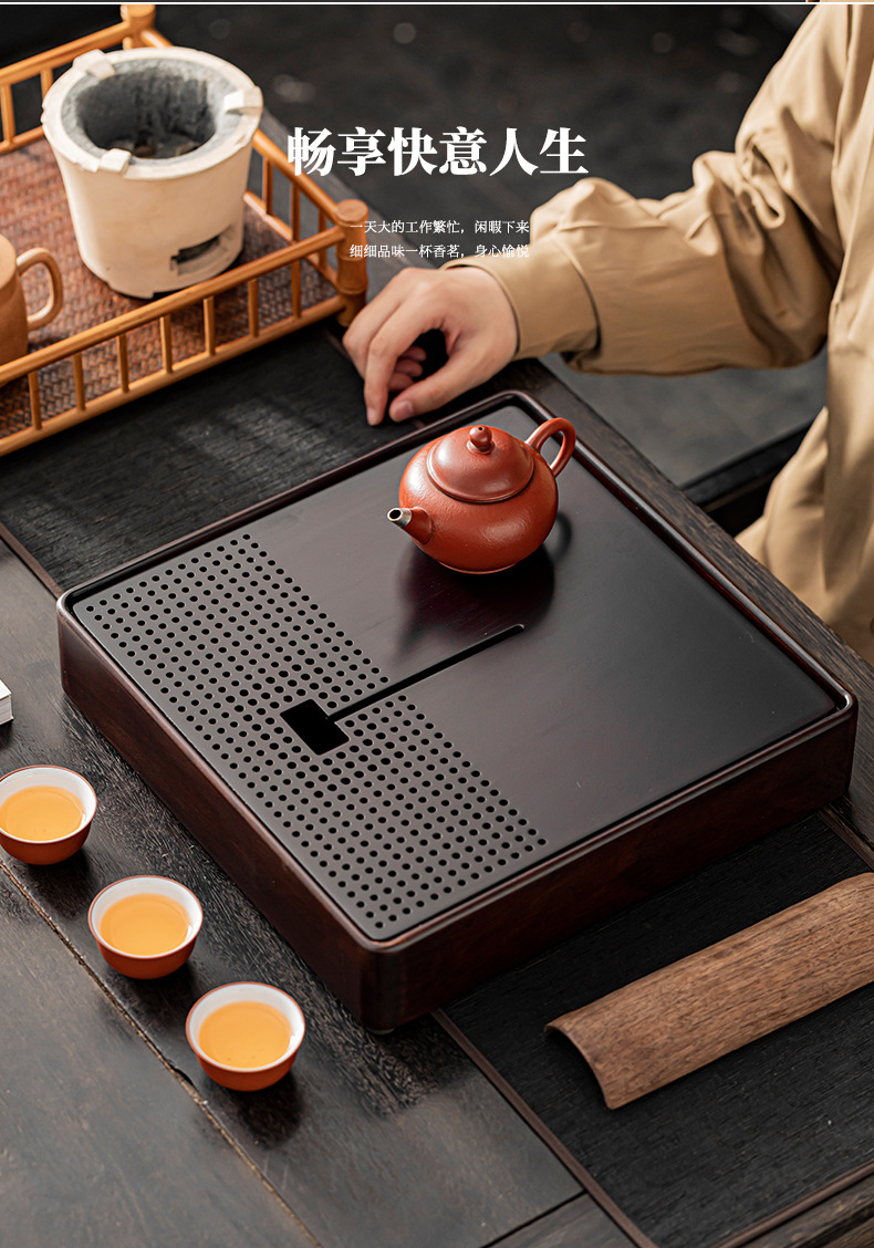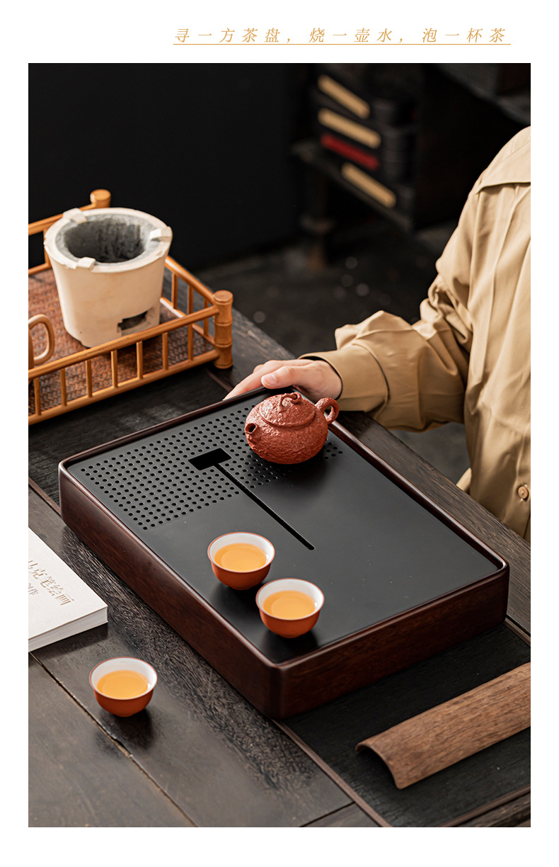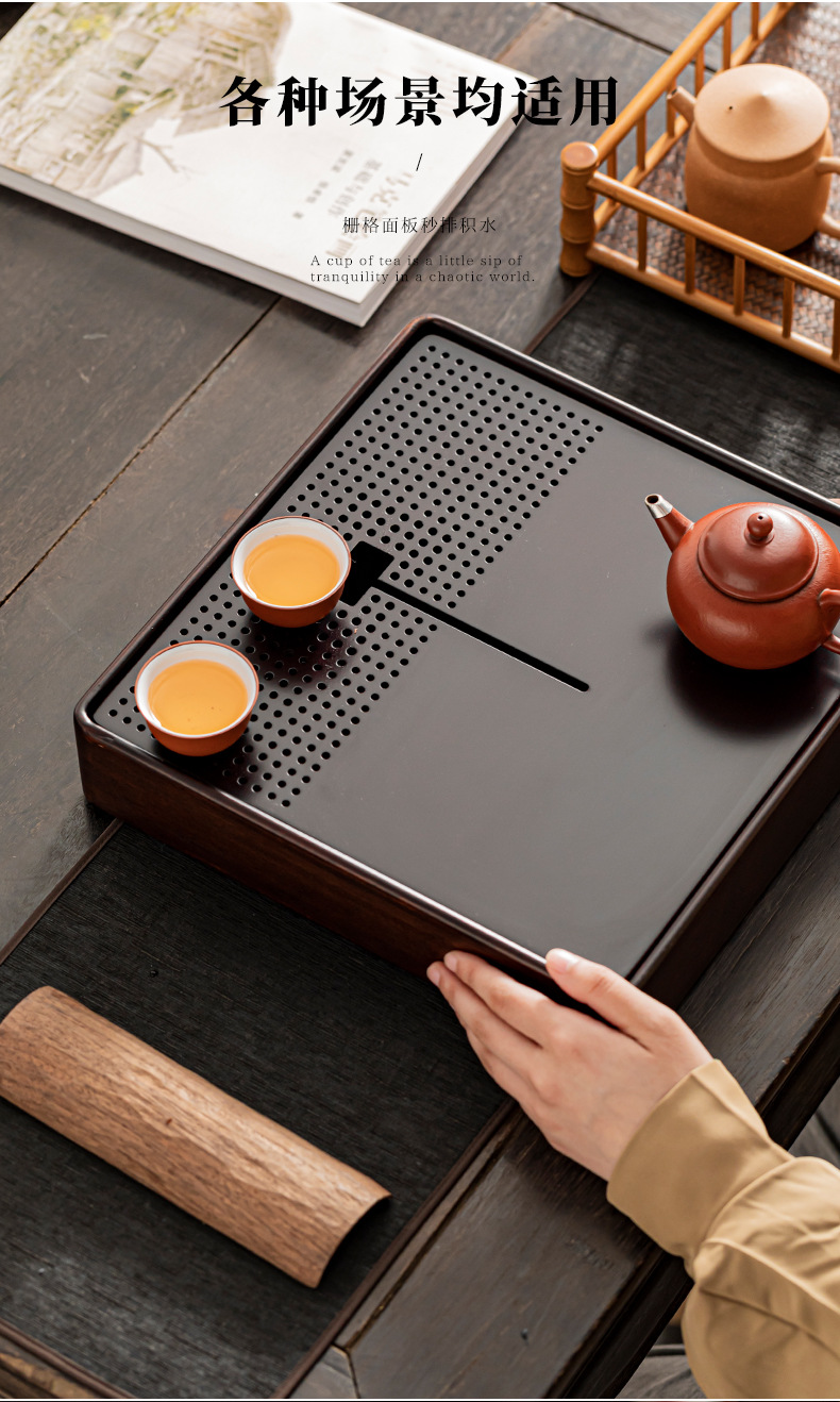 2024 새로운 스타일의 단단한 나무 차 트레이 가정용 쿵푸 차 세트 물 저장 건조 적신 테이블 작은 차 테이블 트레이