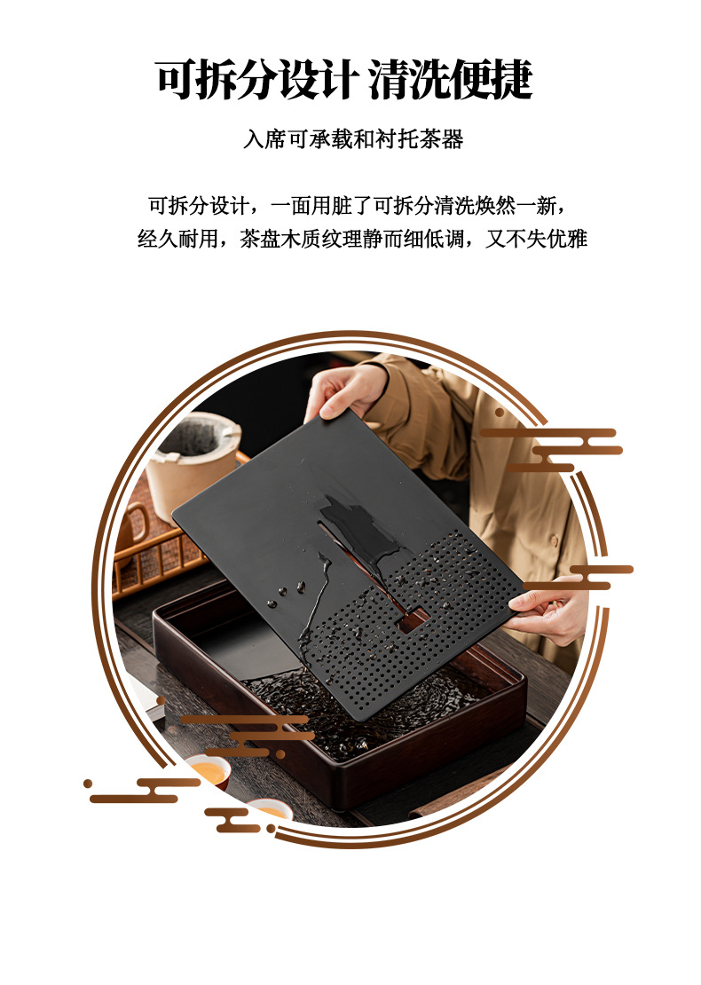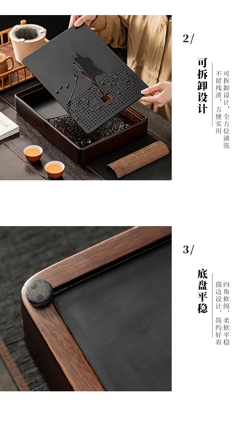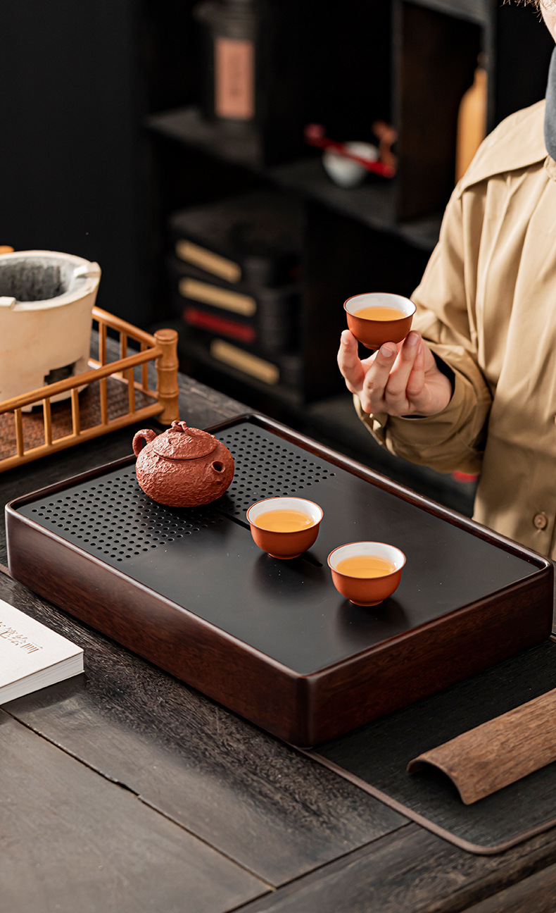2024 새로운 스타일의 단단한 나무 차 트레이 가정용 쿵푸 차 세트 물 저장 건조 적신 테이블 작은 차 테이블 트레이